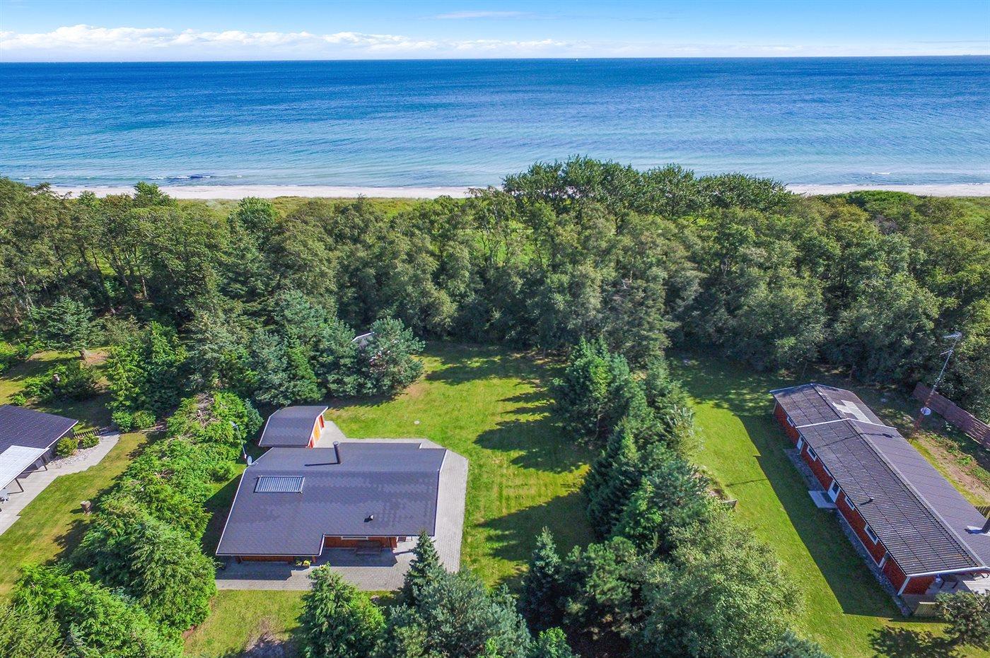Fritidsbostaden ligger på en 1867 m² stor naturtomt. Avstånd till hav är 25 m. Närmeste affär ligger på ett avstånd av 6000 m. Till fritidsbostaden hör 70 m² terrass. Dessutom finns det 20 m² övertäckt terrass. Redskapsutrymmet. Sandlåda. Det finns uttag för att ladda elbil vid huset. Med 11 kW laddningseffekt. P-plats på tomten.