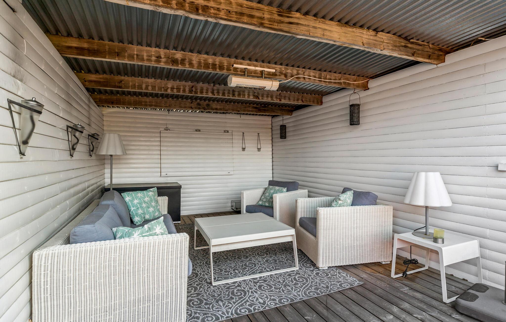 Utanför finns en rymlig terrass med flera sittgrupper, både i solen och under tak och skyddade från vinden. Lägg dig ner på solstolarna, läs en bok eller njut av dina måltider utomhus. Den välskötta trädgården erbjuder gott om utrymme för att leka eller bara koppla av i det fria.