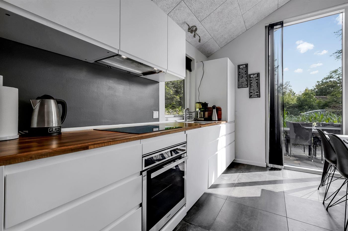 Köket är utrustad med 1 kylskåp Det finns 4 induktionshällar, varmluftsugn, mikrovågsugn samt diskmaskin.