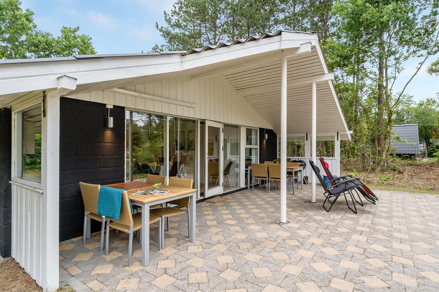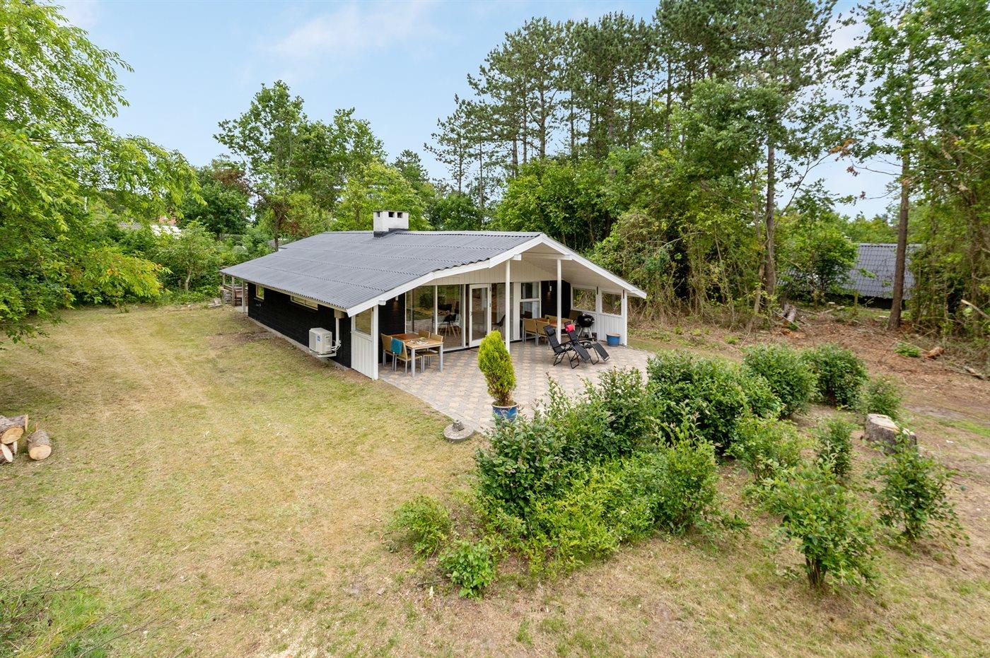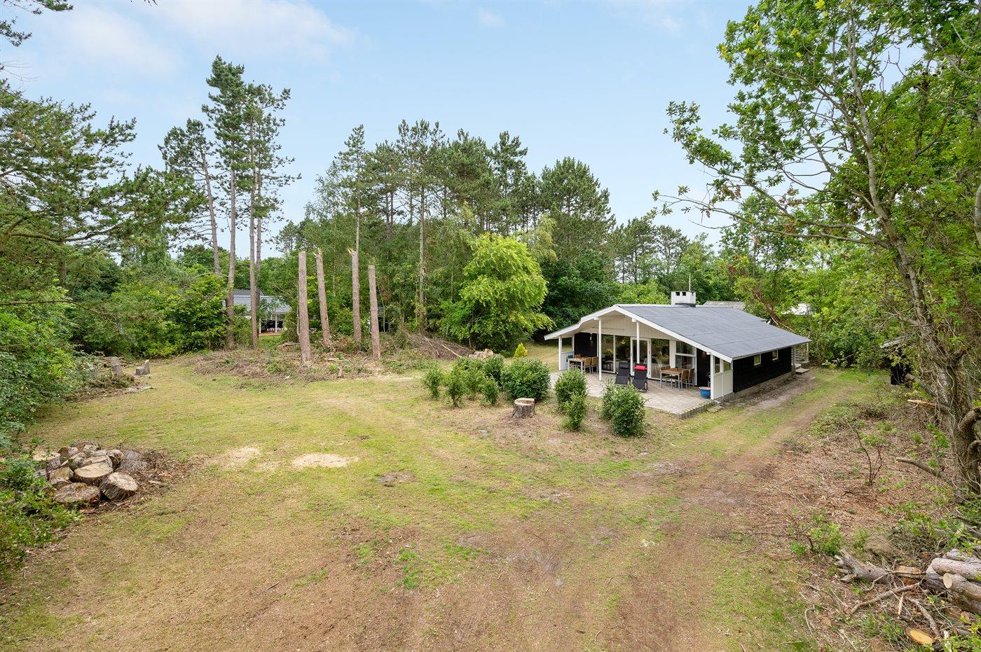 Fritidsbostaden ligger på en 2500 m² stor naturtomt. Avstånd till hav är 300 m. Närmeste affär ligger på ett avstånd av 800 m. Till fritidsbostaden hör 30 m² terrass. Dessutom finns det 30 m² övertäckt terrass. Sandlåda. Trampolin. Det finns grill til förfogande. P-plats på tomten.