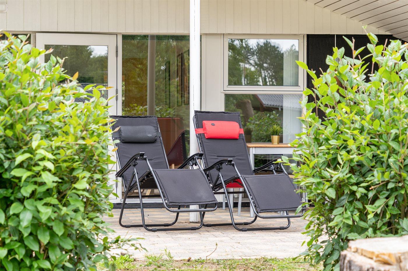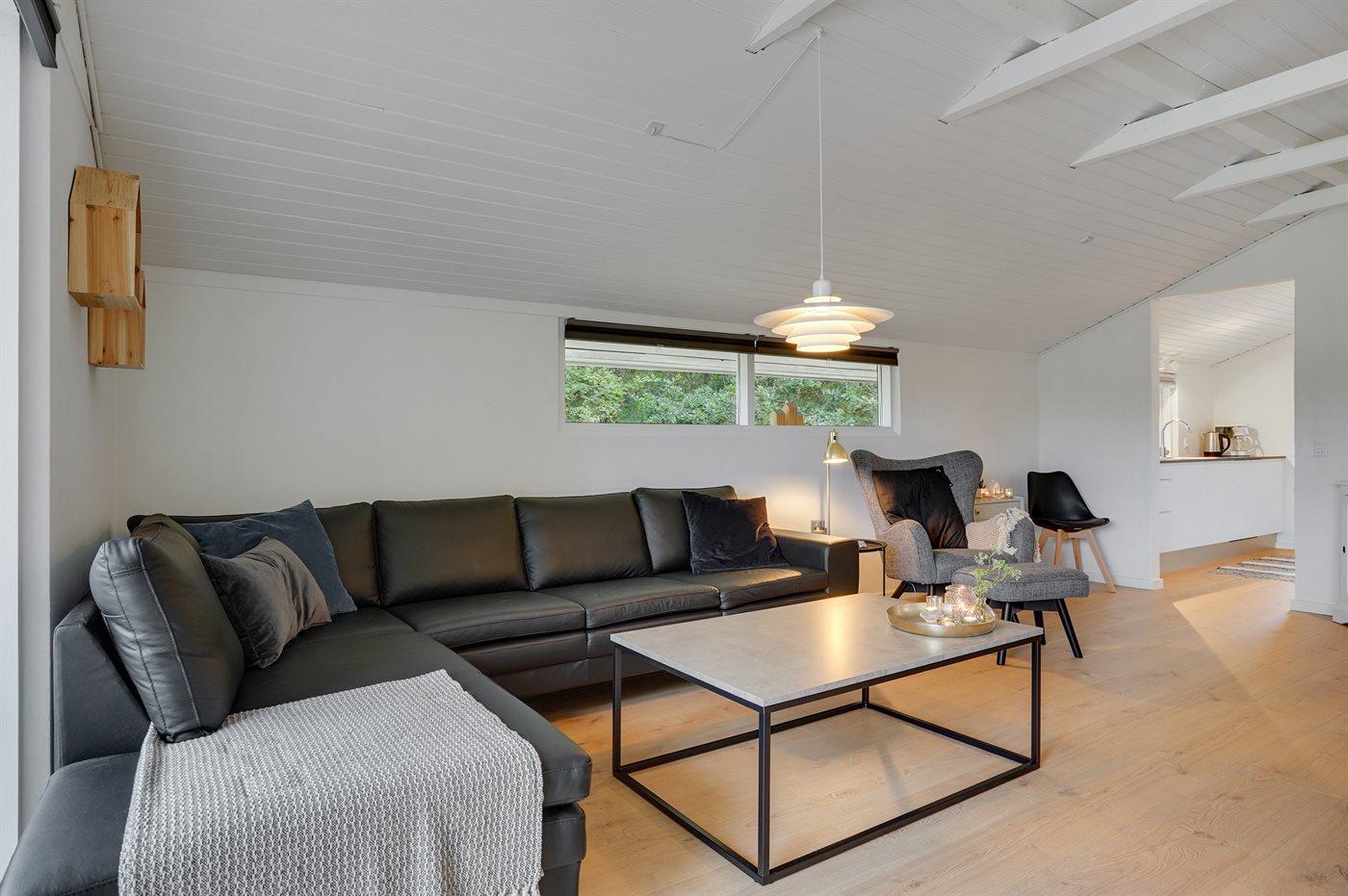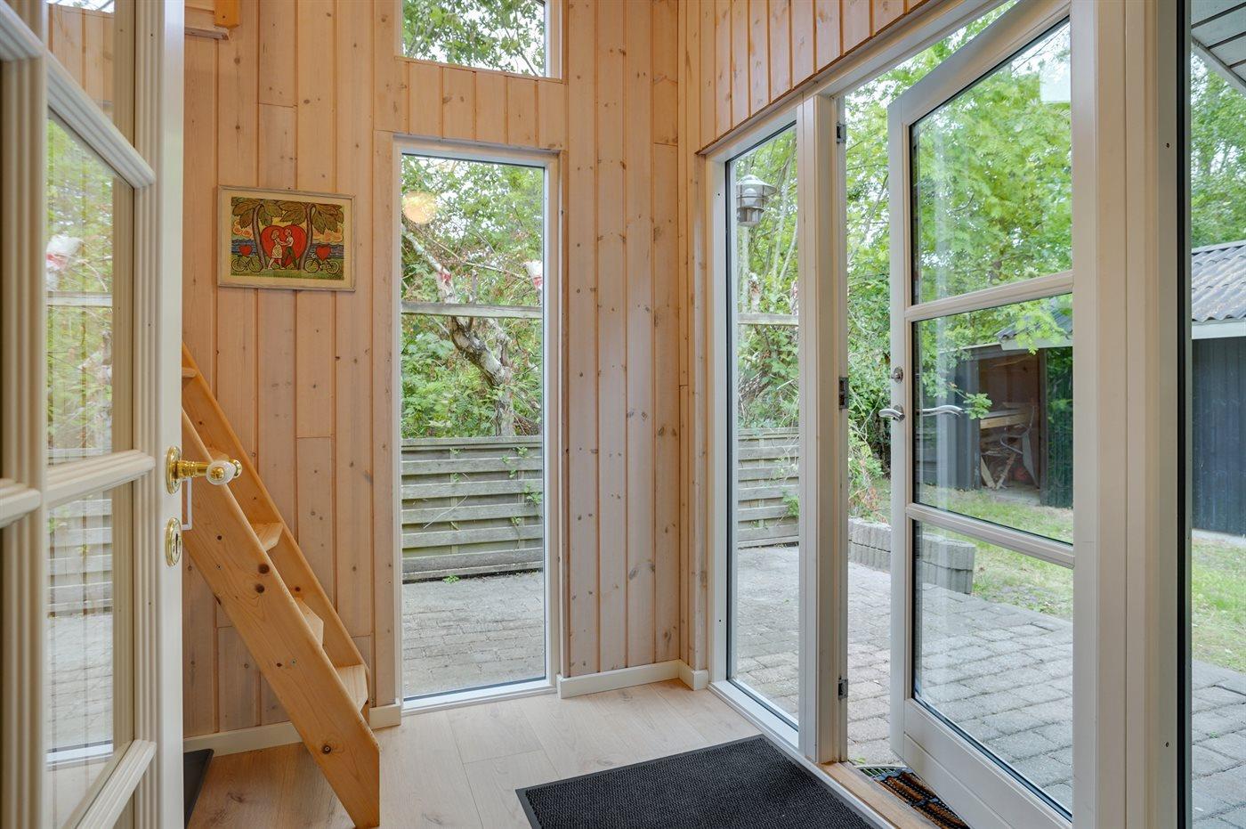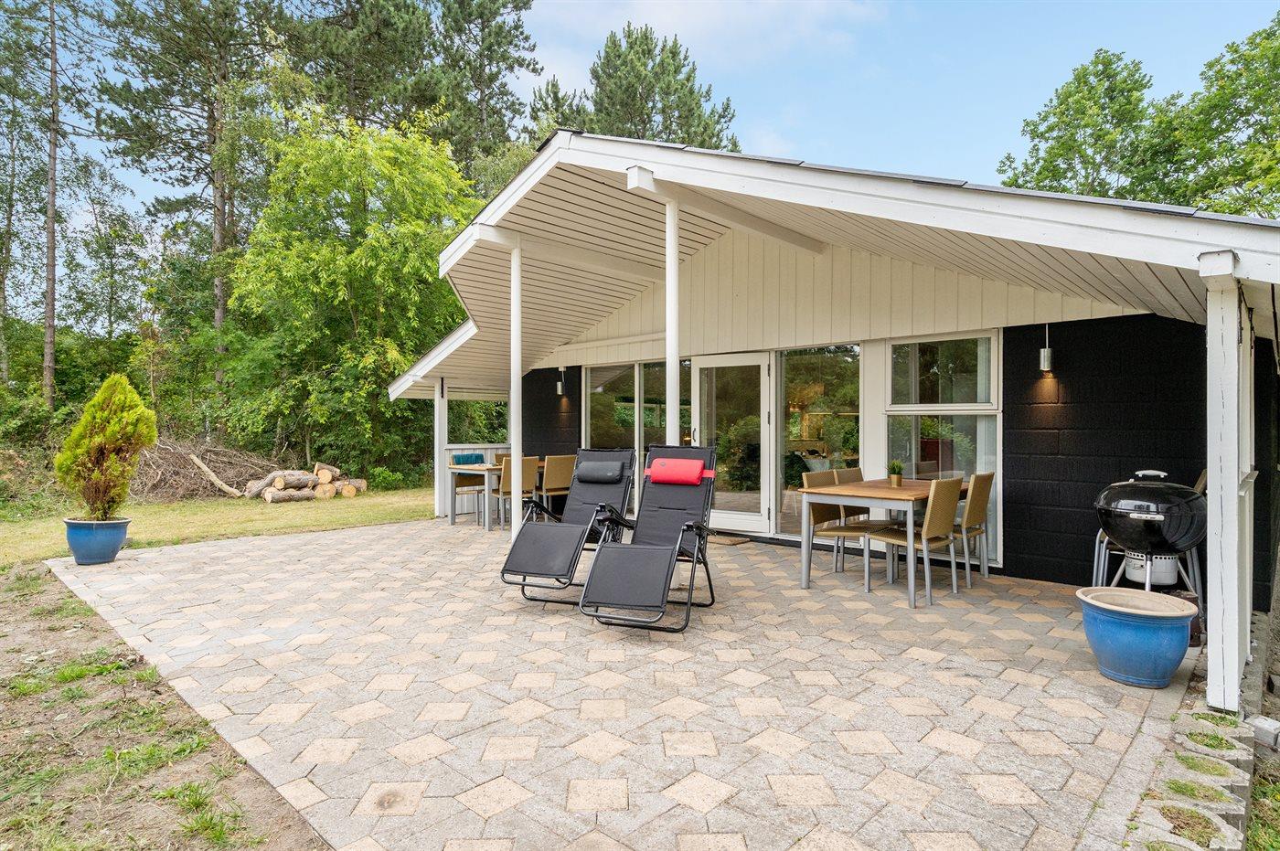 Fritidsbostaden ligger på en 2500 m² stor naturtomt. Avstånd till hav är 300 m. Närmeste affär ligger på ett avstånd av 800 m. Till fritidsbostaden hör 30 m² terrass. Dessutom finns det 30 m² övertäckt terrass. Sandlåda. Trampolin. Det finns grill til förfogande. P-plats på tomten.
