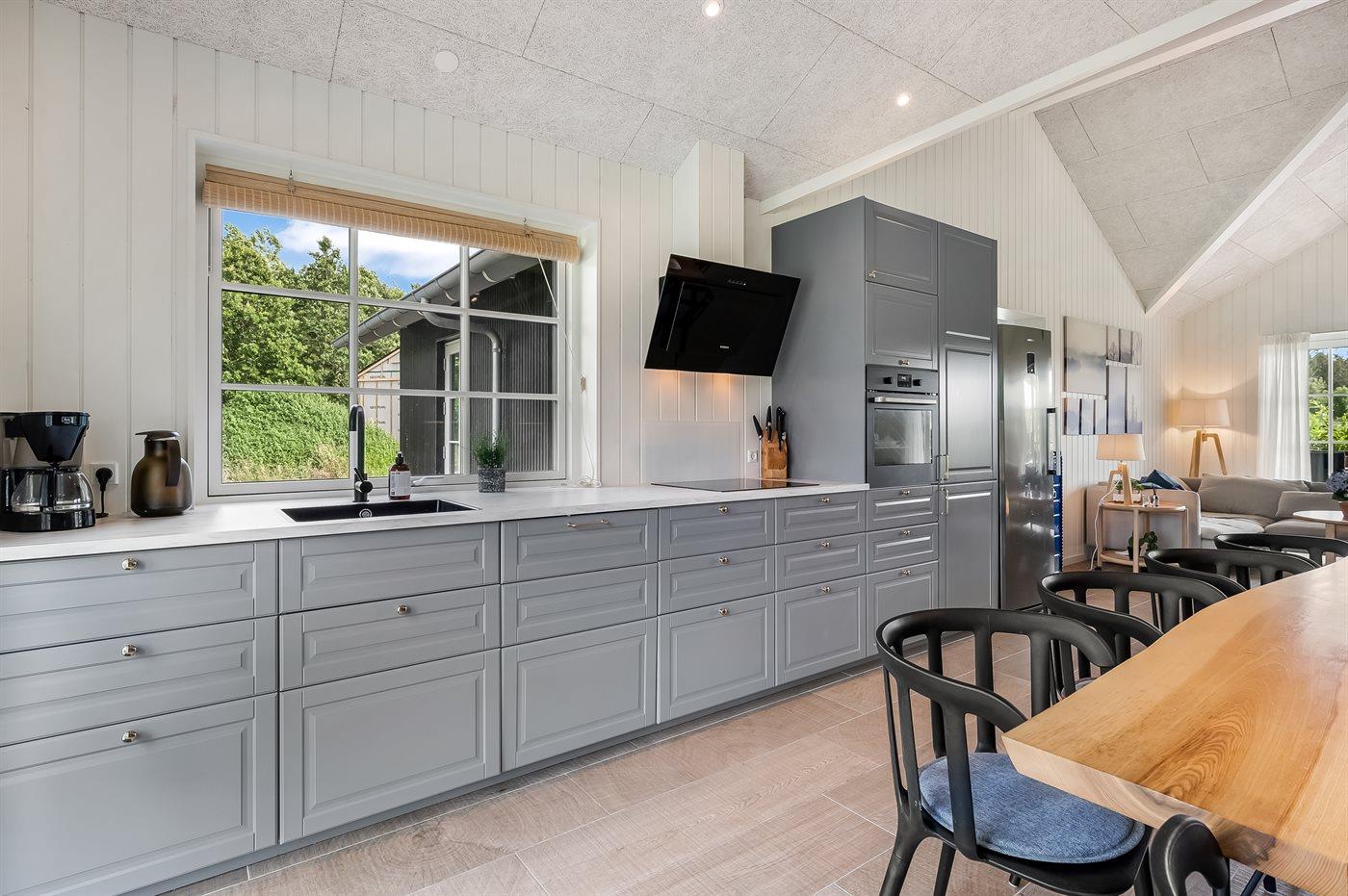 Köket är utrustad med 1 kylskåp Det finns 4 induktionshällar, varmluftsugn, mikrovågsugn samt diskmaskin.