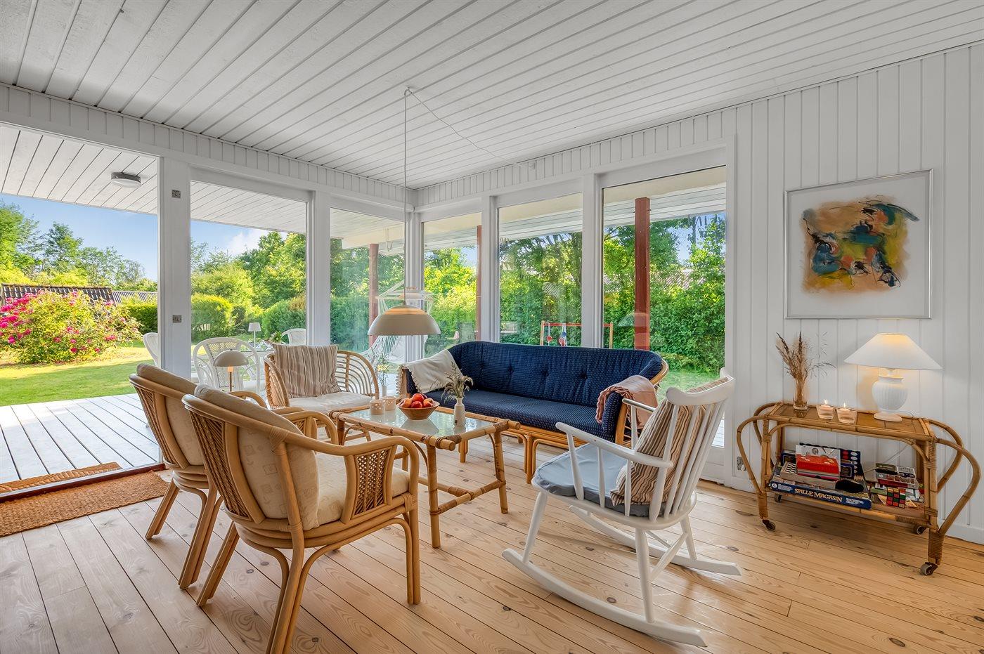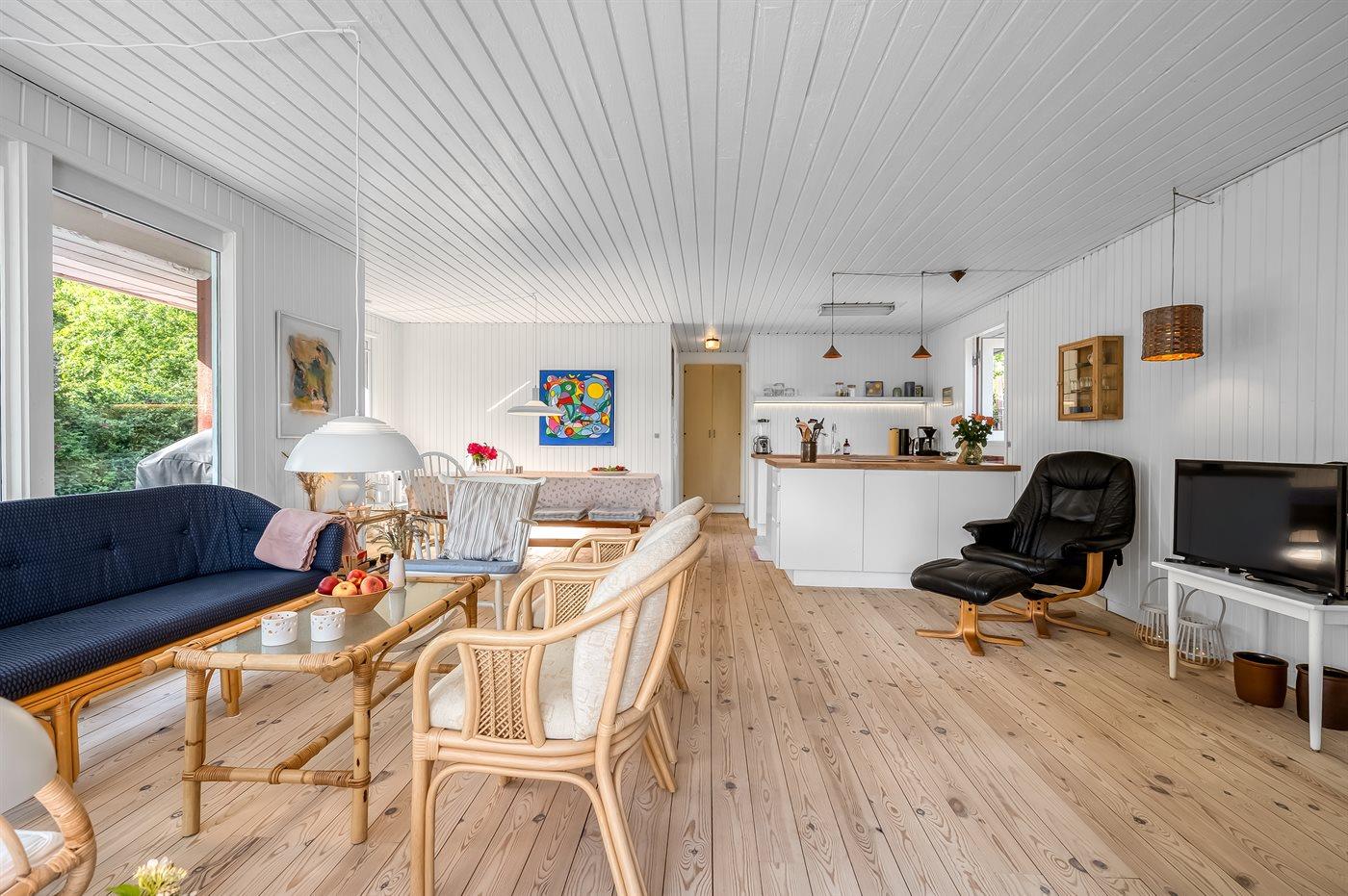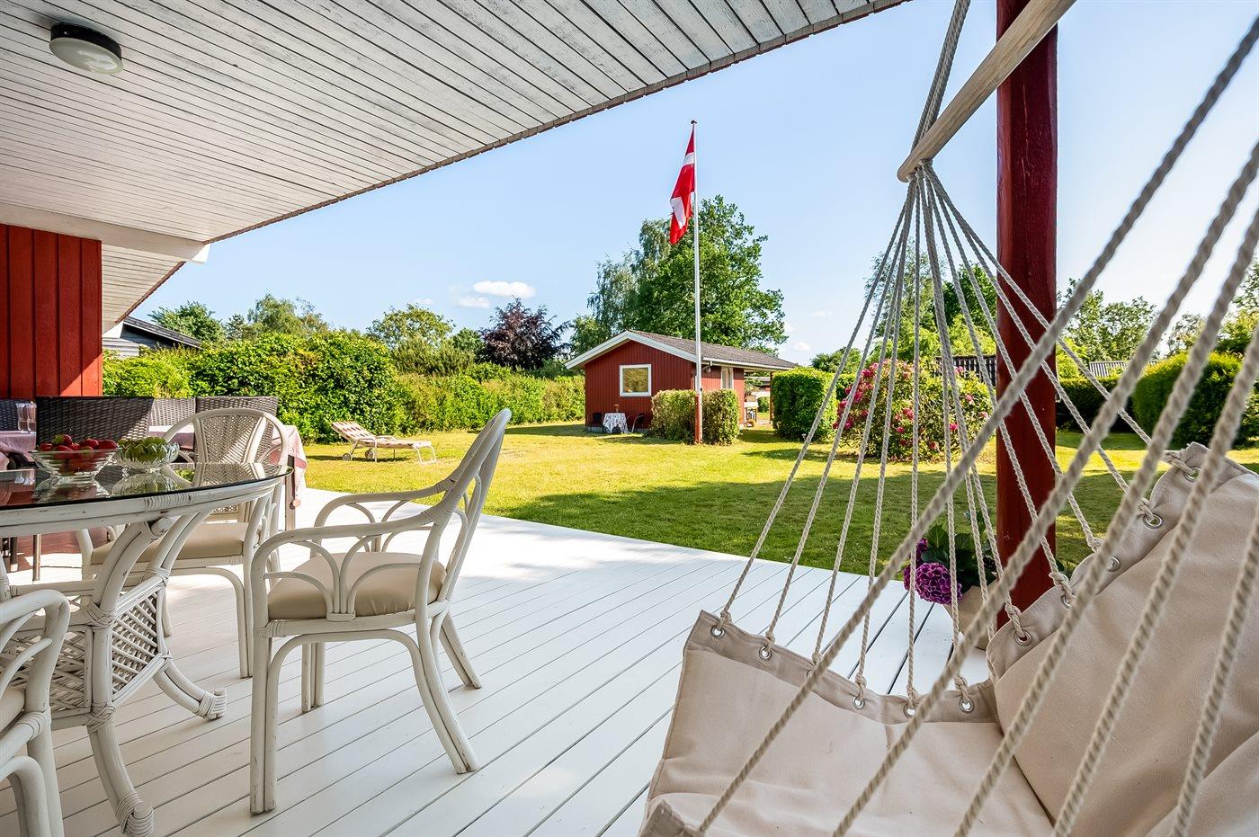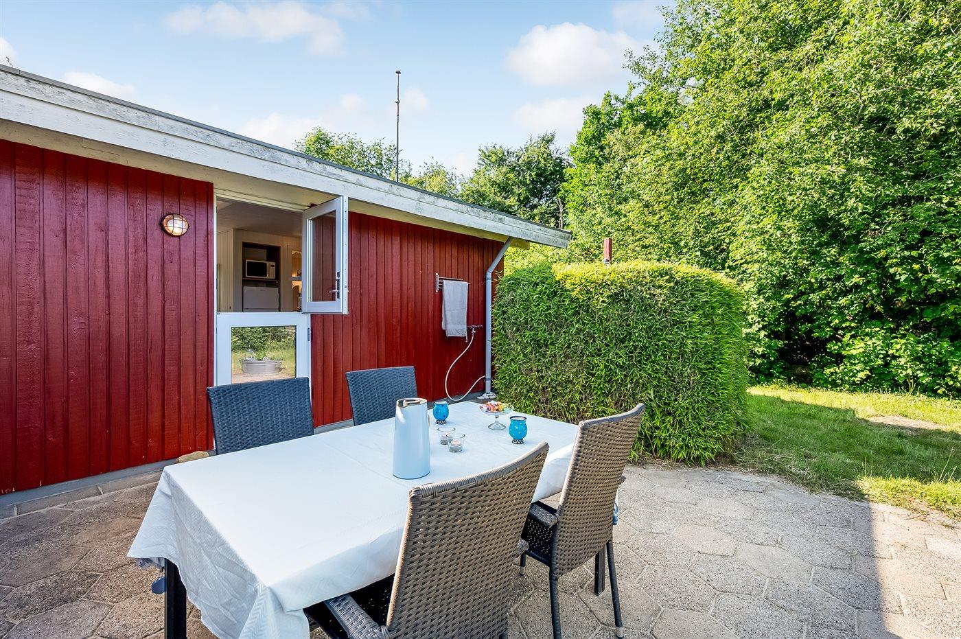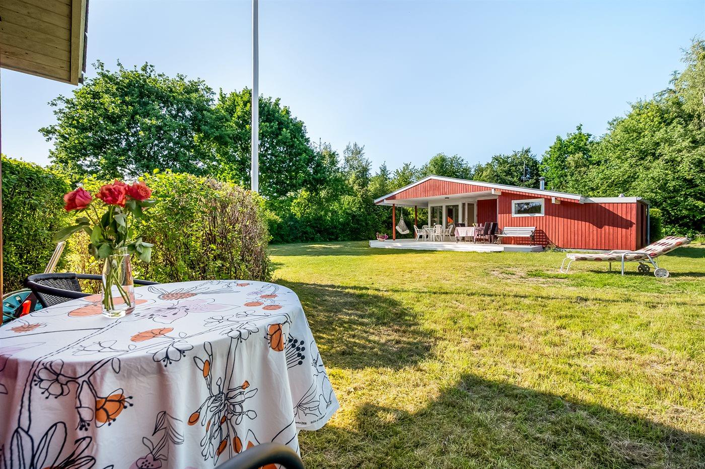 Fritidsbostaden ligger på en 1200 m² stor naturtomt. Avstånd till hav är 500 m. Närmeste affär ligger på ett avstånd av 3000 m. Till fritidsbostaden hör terrass. Dessutom finns det övertäckt terrass. Utomhus dusch. Det finns grill til förfogande. Det finns carport till förfogande. P-plats på tomten.
