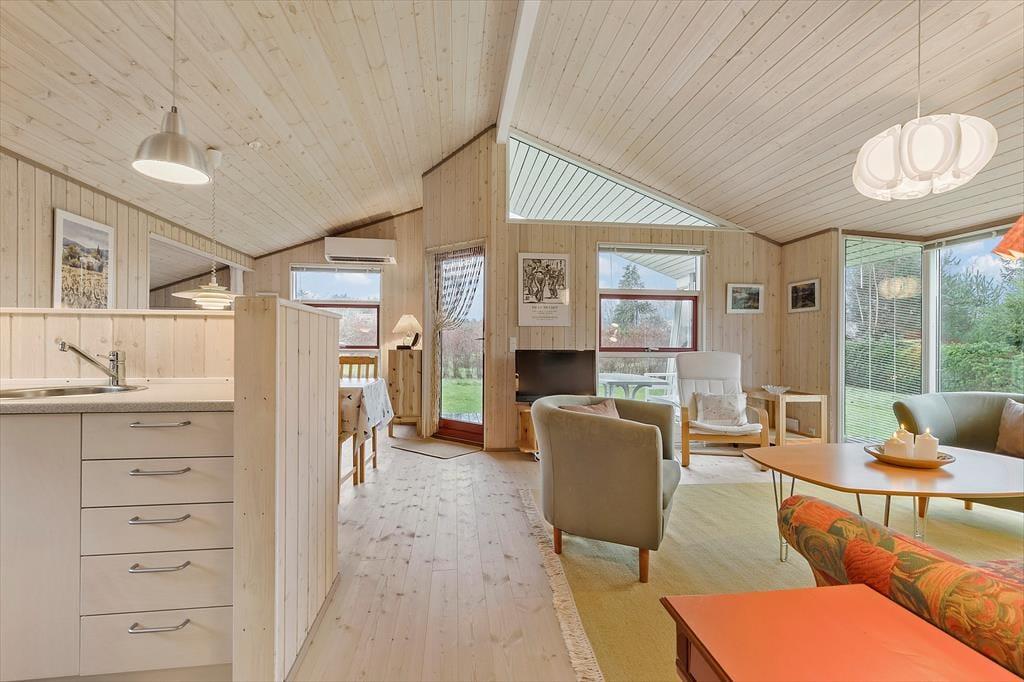Erlebnis für sich. Gjerrild Nordstrand ist ein wahres Mekka für Hobbyornithologen, die hier seltene Vogelarten in ihrer natürlichen Umgebung beobachten. Der Strand gilt als kinderfreundlich. Er überzeugt mit Dünen, verfügt über die Blaue Flagge und verzaubert mit einer Atmosphäre, die an die Urlaube deiner Kindheit erinnert. Auf deinem Weg zum Ferienhaus durchquerst du die kleine, idyllische Ortschaft Gjerrild, in der die Zeit stillzustehen scheint. Im Ort triffst du auf einen alten Landgasthof, ein Lebensmittelgeschäft und eine hübsche Kirche - dänische Landidylle, die deinen Urlaub wunderbar abrundet. Die Steilküste Gjerrild Klint gilt als einer der besten Fangplätze für Meerforellen. Die Umgebung ist von vielen guten Wander- und Fahrradrouten durchzogen, zu denen unter anderem der hübsche Nordsøstien gehört, der von Udbyhøj am Randers Fjord bis nach Grenaa verläuft. Die alte Handels- und Hafenstadt Grenaa erreichst du per Pkw innerhalb von 20 Minuten. Grenaas Fußgängerzone lädt mit kleinen Geschäften und Cafés zum Bummeln und Verweilen ein. Im Hafen liegt das tolle Kattegatcentret, in dem ihr großen Haien, niedlichen Pinguinen und anderen Bewohnern der Weltmeere ganz nah kommt. Spaß und Spannung für Groß und Klein verspricht der größte Vergnügungspark des Nordens, das Djurs Sommerland, das nur eine halbe Stunde vom Ferienhaus entfernt ist. Djursland weiß generell mit einer Vielzahl an Aktivitätsmöglichkeiten und Sehenswürdigkeiten zu punkten. Falls es euch eher in die Stadt zieht, erreicht ihr innerhalb von einer Autostunde Randers und Aarhus.