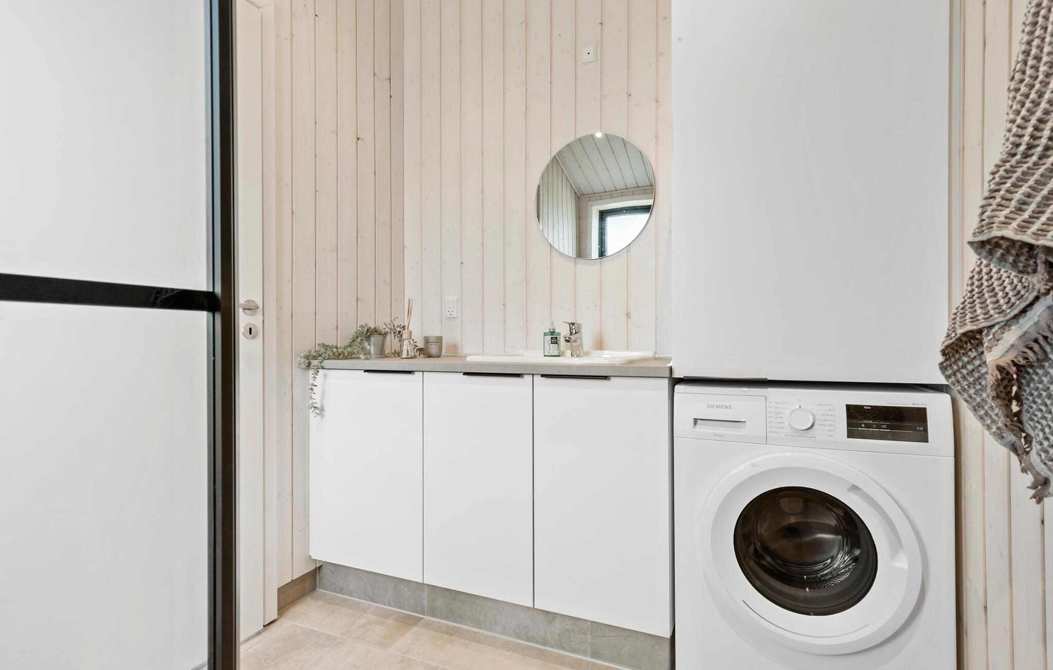 Detta vackra semesterhus välkomnar dig inte långt från sandstranden. Den moderna och enkla inredningsstilen inbjuder dig att koppla av och slå dig ner på de utvalda möblerna, spela spel och njuta av atmosfären med gott om naturligt ljus och en ljus inredning.