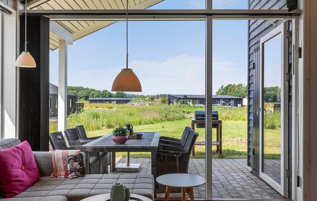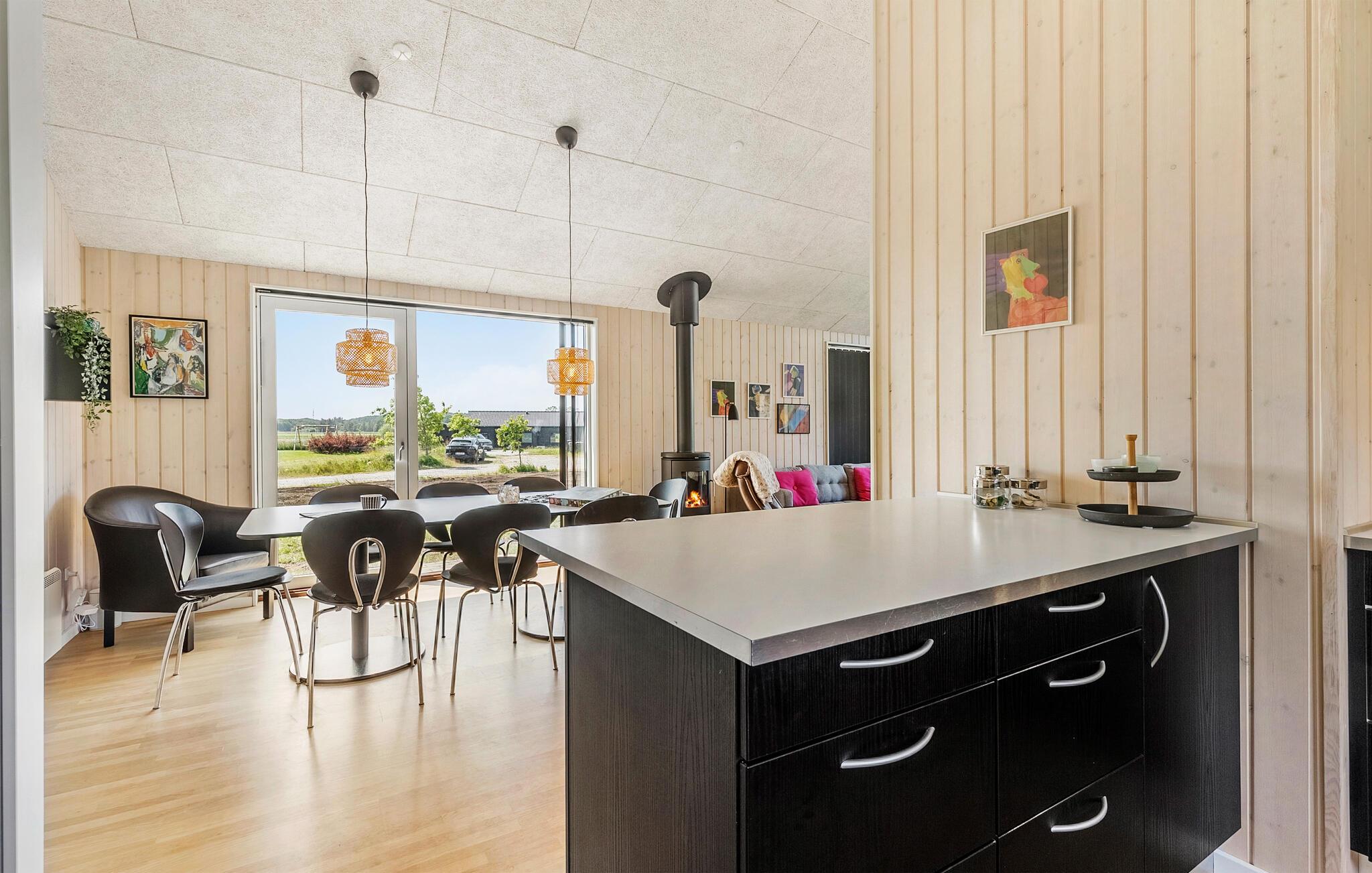 Tillbringa en avkopplande semester i detta moderna semesterhus. Koppla av i det ljusa vardagsrummet med panoramafönster och utsikt över landsbygden. Gör det bekvämt för dig framför den vedeldade kaminen, läs en bok eller se en film på den stora TV:n. Matplatsen och matlagningsavdelningen i öppen planlösning är modern och funktionell, med en generös arbetsyta och barstolar för små pauser däremellan. Ät era måltider vid det stora matbordet och planera nästa dag på er semester tillsammans.