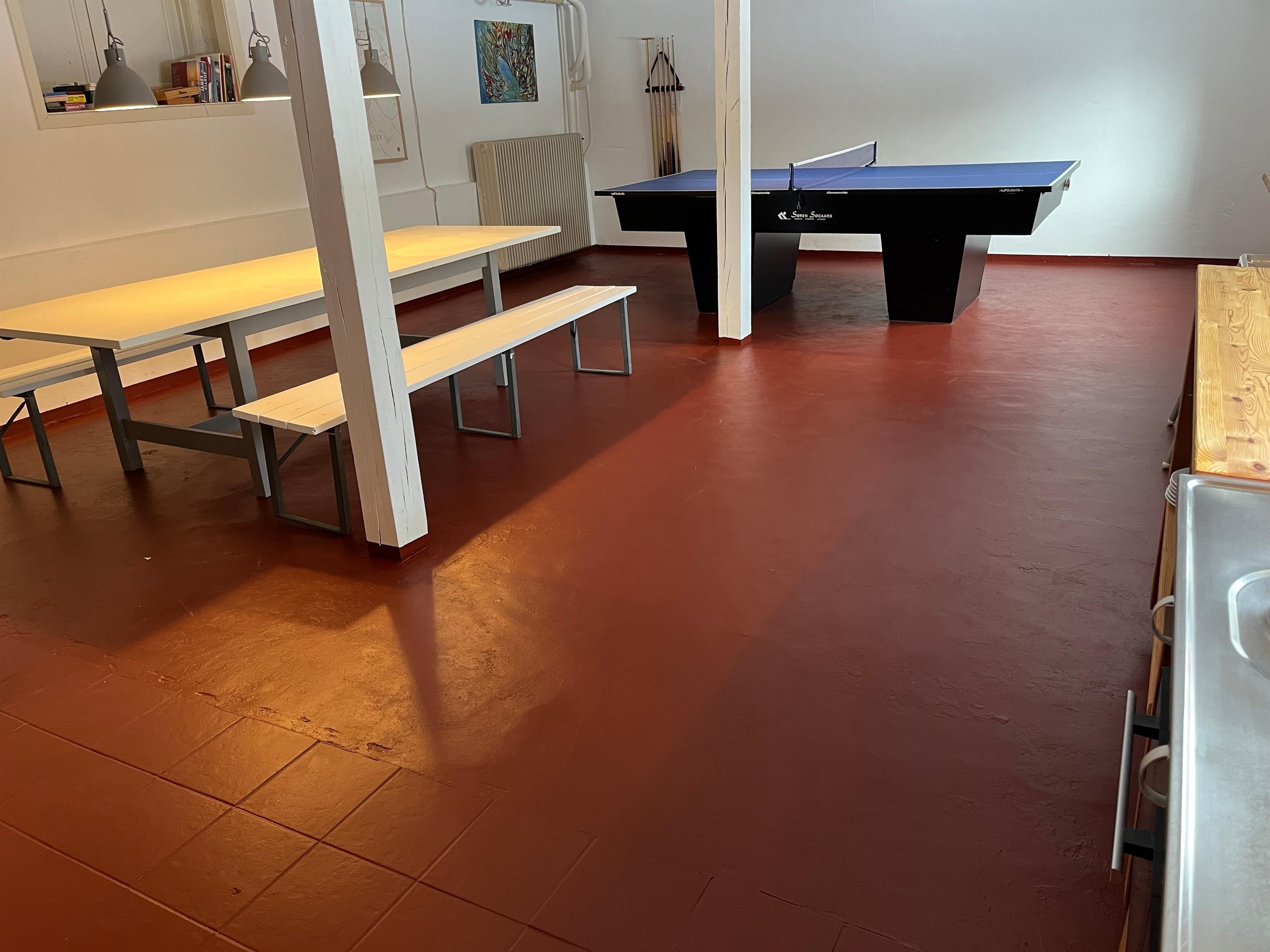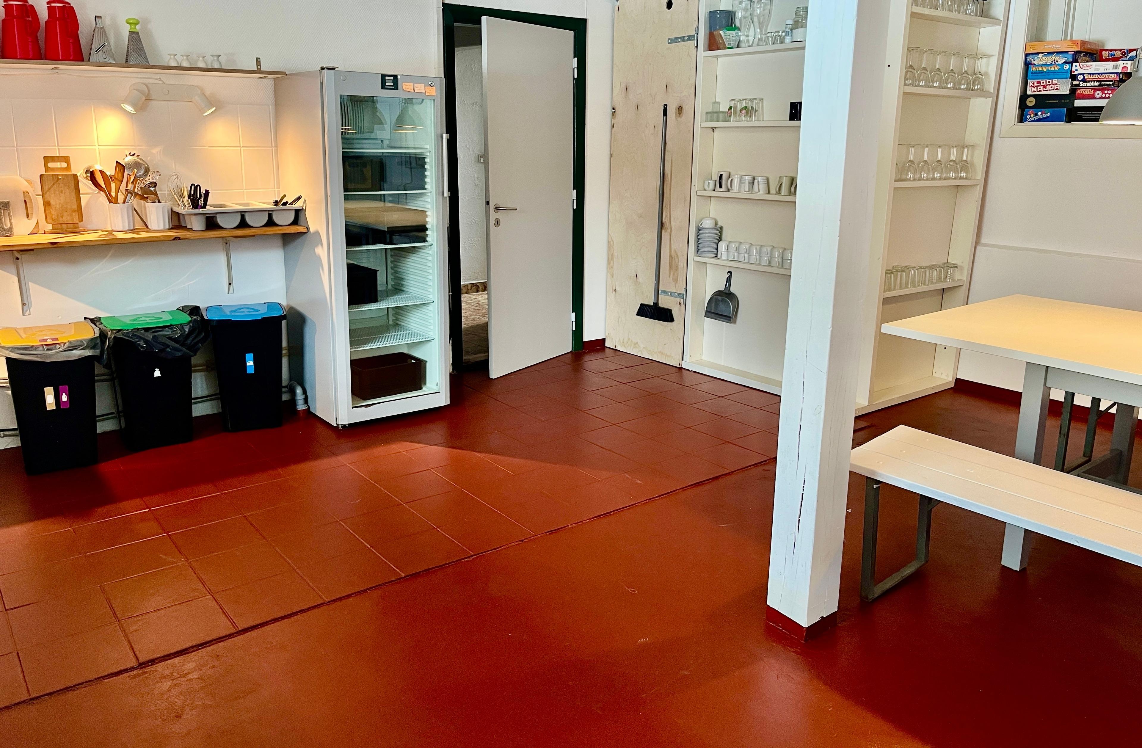 Die Gemeinschaftsküche mit Billardtisch/Tischtennisplatte befindet sich im Haupthaus.