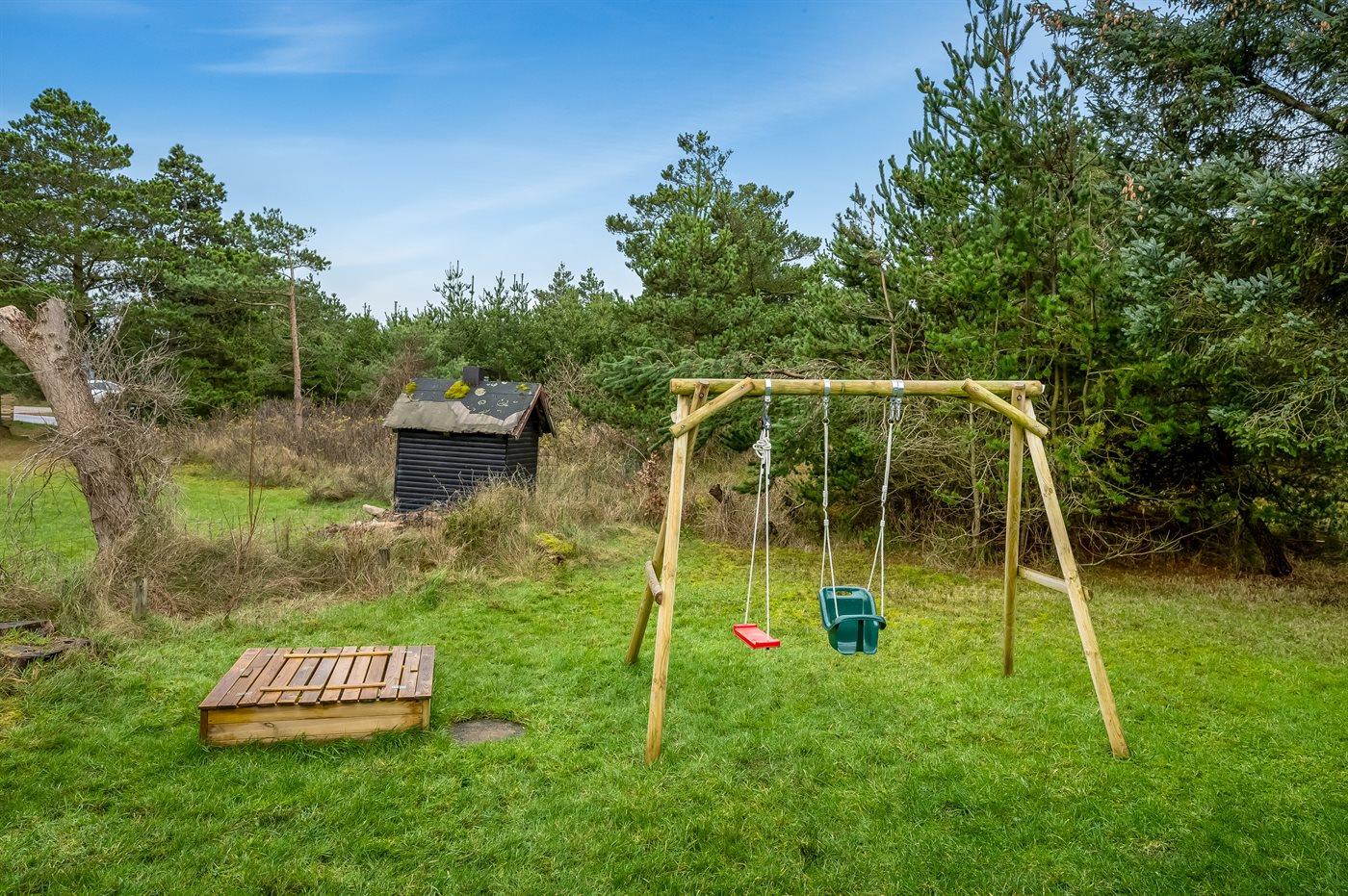 Fritidsbostaden ligger på en 769 m² stor naturtomt. Avstånd till hav är 600 m. Närmeste affär ligger på ett avstånd av 3500 m. Till fritidsbostaden hör terrass. Gunga. Sandlåda. Det finns grill til förfogande. Det finns uttag för att ladda elbil vid huset. Kontakt typ 2. Med 11 kW laddningseffekt. P-plats på tomten.