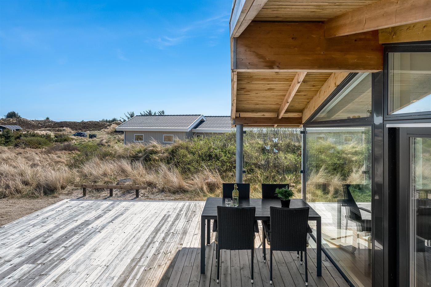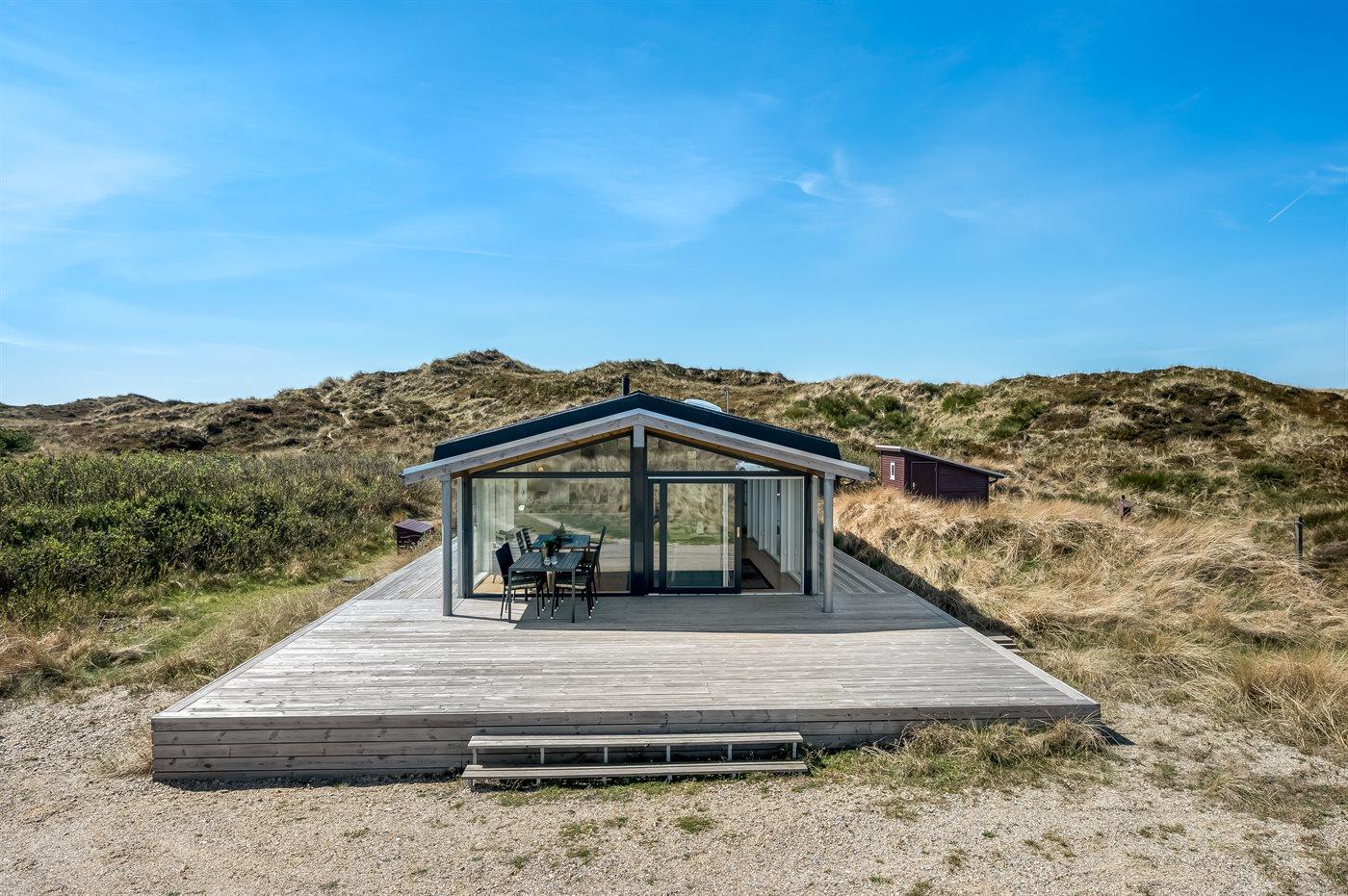 Fritidsbostaden ligger på en 2530 m² stor naturtomt. Avstånd till hav är 200 m. Närmeste affär ligger på ett avstånd av 8000 m. Till fritidsbostaden hör 86 m² terrass. Dessutom finns det 80 m² övertäckt terrass. Utomhus dusch. P-plats på tomten.