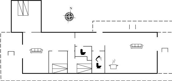 Köket är utrustad med 1 kylskåp (168 L). Det finns 5 induktionshällar, varmluftsugn, mikrovågsugn samt diskmaskin.
