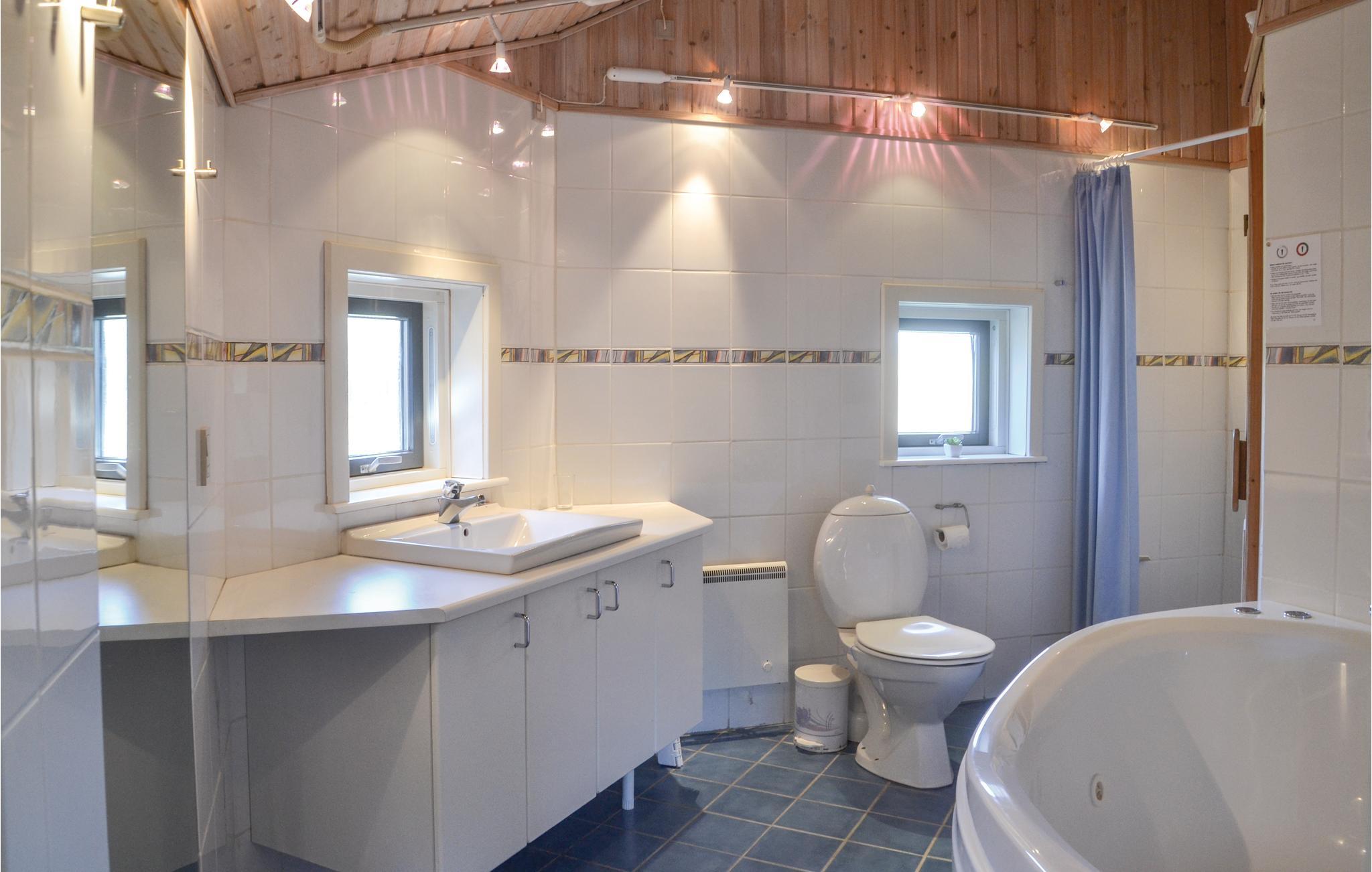 Denna vackra, familjevänliga semesterbostad ligger mitt i Grærups natursköna område med sanddyner, hedlandskap, fiskesjö och strand. Det är inrett med eleganta och praktiska möbler. I vardagsrummet, som ligger ett trappsteg ner, finns en vedeldad kamin som är särskilt mysig på svala kvällar. I badrummet finns en massagewand och tillgång till bastun, vilket är perfekt efter en lång dag i naturen. Under sommardagar kan du njuta av den stora, öppna och täckta terrassen. Det här härliga huset är idealiskt för hela året runt. Se fram emot att kunna uppleva naturen på nära håll här.