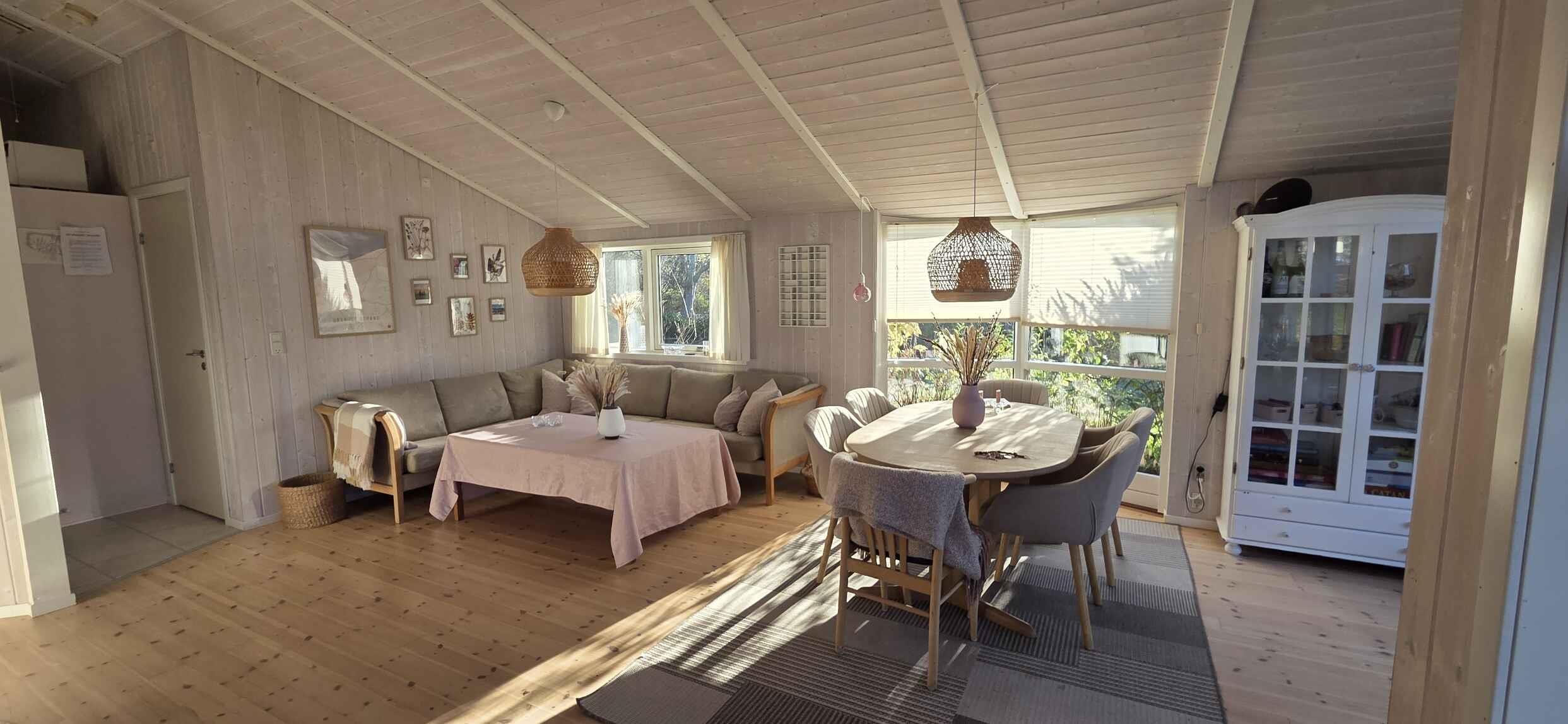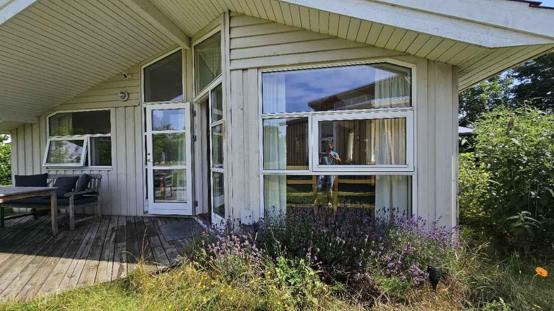 This bright, stylish, and well-designed holiday home from 2006, measuring 80 m², is perfect for both relaxation and social time all year round thanks to its full insulation. The house features a large, high-ceilinged living room with impressive windows that provide abundant natural light. The open kitchen creates a cozy connection to the living area, and the interior with white-toned wooden walls, light ceilings, and wooden floors offers a classic holiday-home atmosphere. There are three bedrooms, all separated by one or more rooms or walls, a bathroom with both spa and sauna, and an additional guest toilet—ideal for both family and guests. For more active days, there are football goals and bicycles available, so the holiday can be combined with outings and play. Outside, you will find south-, east-, and west-facing terraces on a sunny and private plot with an easy-to-maintain lawn, where you can enjoy the sun from morning to evening. It is the perfect setting for everything from quiet morning coffee to cozy barbecue dinners. A holiday home with comfort and charm—ready to host many great holiday memories. Please note: Pets and parties are not allowed, and the house is not rented out to tradespeople. Note: Not for commercial rental.