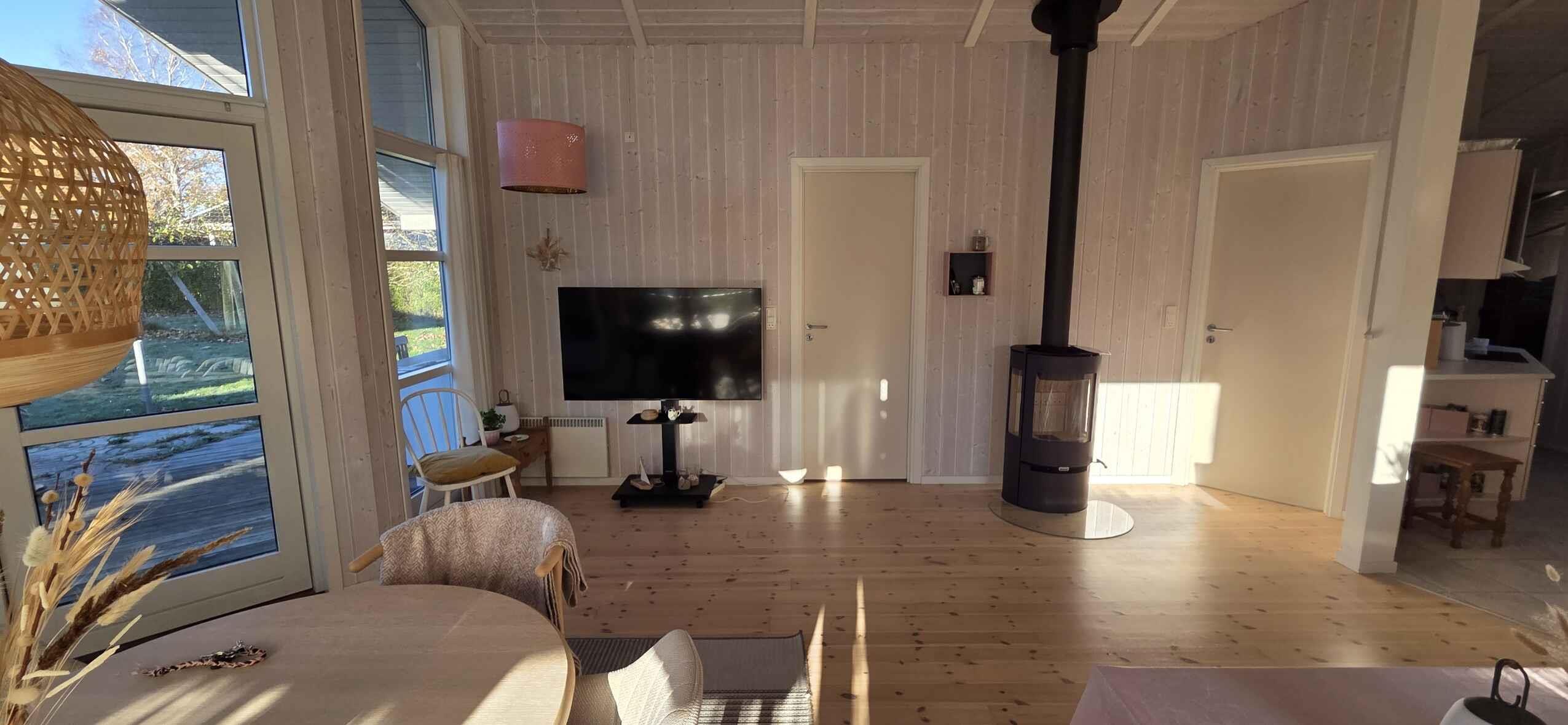 Bright, stylish holiday home with 3 bedrooms, full kitchen, and large bathroom with spa and sauna. It is located in a quiet holiday home area, 1 km from natural woodland, 1.5 km from the beach, and within a short distance of charming harbour towns.