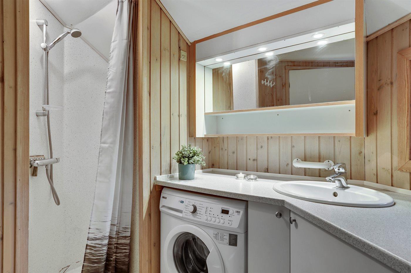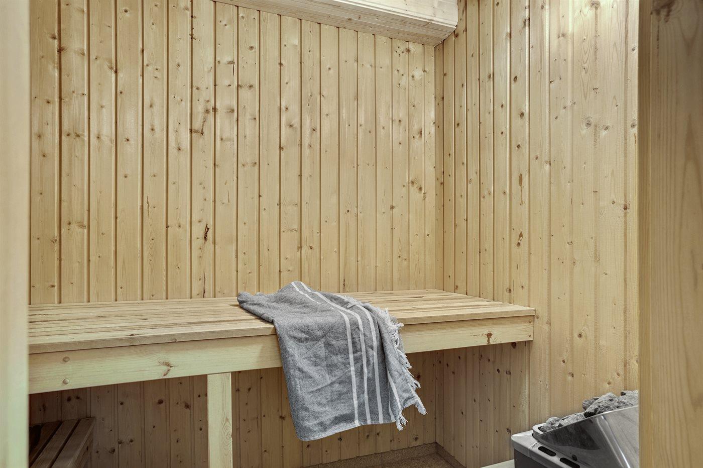 Det finns 1 badrum med duschkabin och 1 toalett. I bastun finns det möjlighet för avkoppling.
