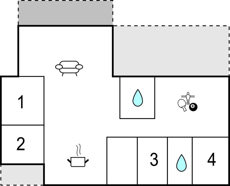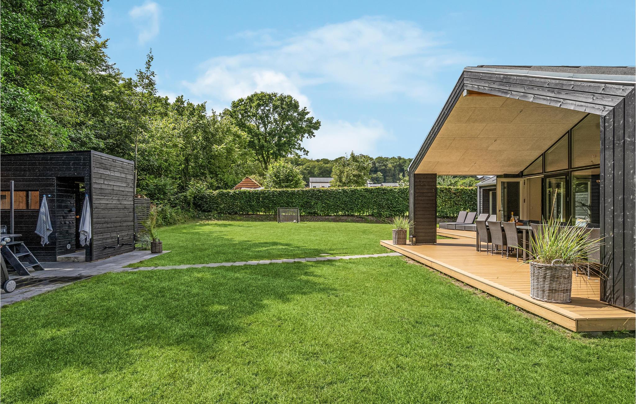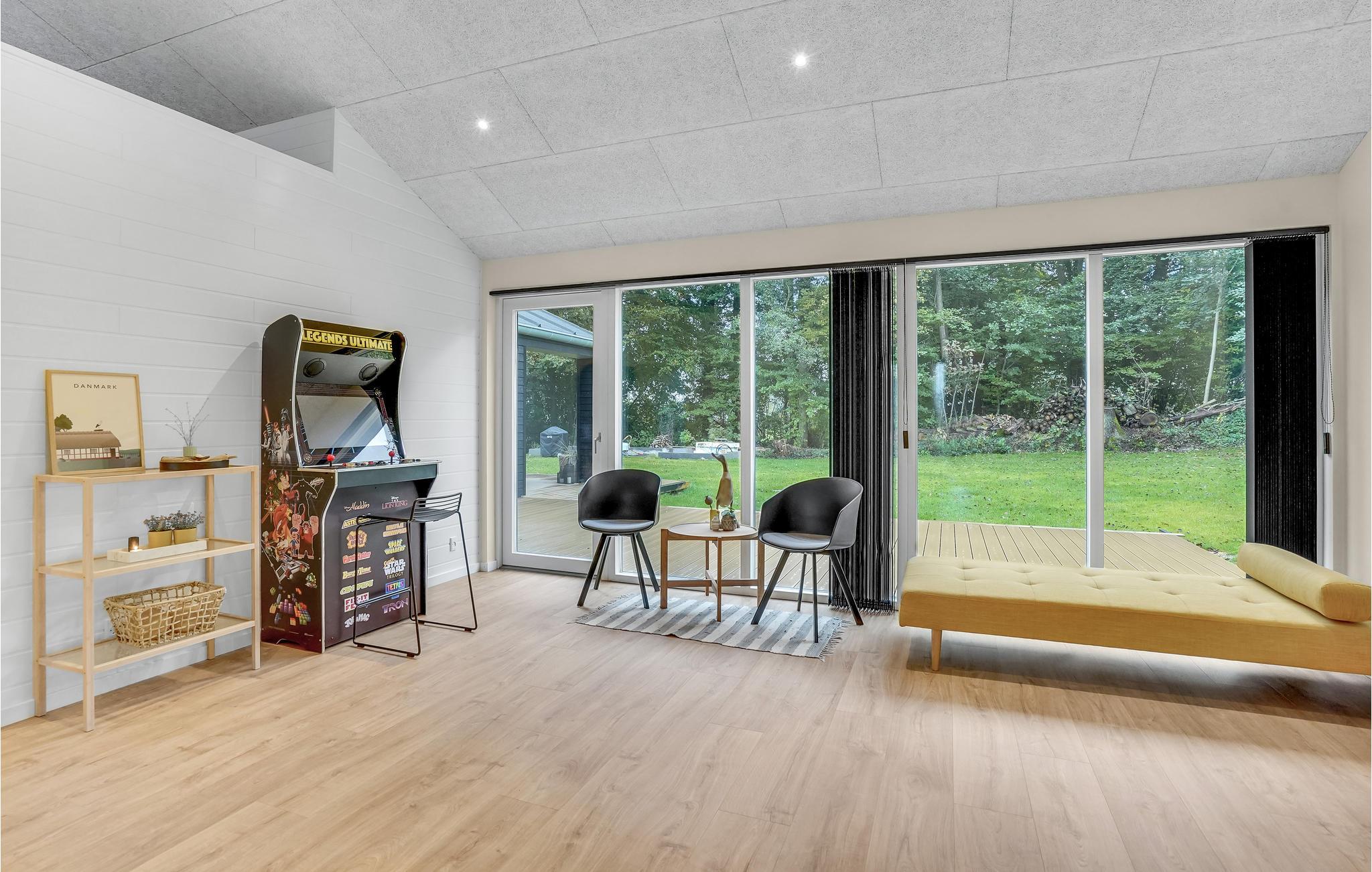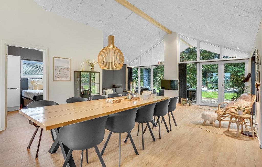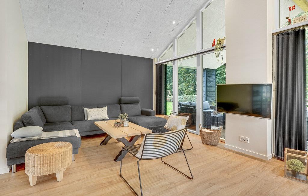 Detta ljusa och moderna semesterhus välkomnar upp till tolv vuxna och ytterligare ett spädbarn med sina fyra sovrum, öppet loft, två badrum, vardagsrum med matkök och aktivitetsrum. Du kan koppla av underbart i bastun eller det finska träbadet. På terrassen kan du äta frukost på morgonen eller avsluta dagen med ett glas vin. En grill för mysiga grillkvällar står också till ditt förfogande. I trädgården finns det gott om plats för avkoppling och lek.
