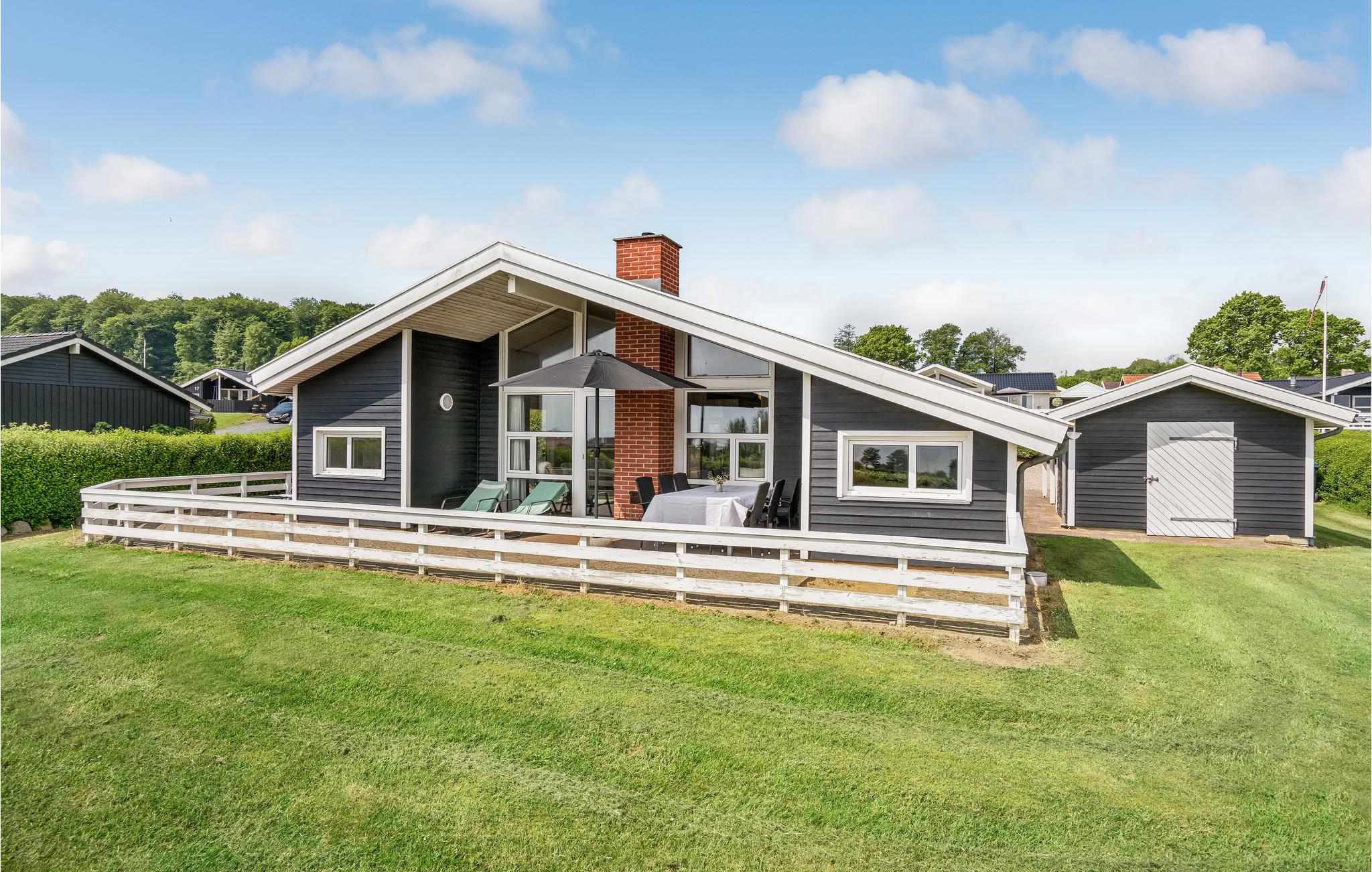 Detta charmiga fritidshus i trä ligger i ett nytt fritidshusområde nära Grønninghoved, som gränsar till den historiska byn Skamlingsbanken.