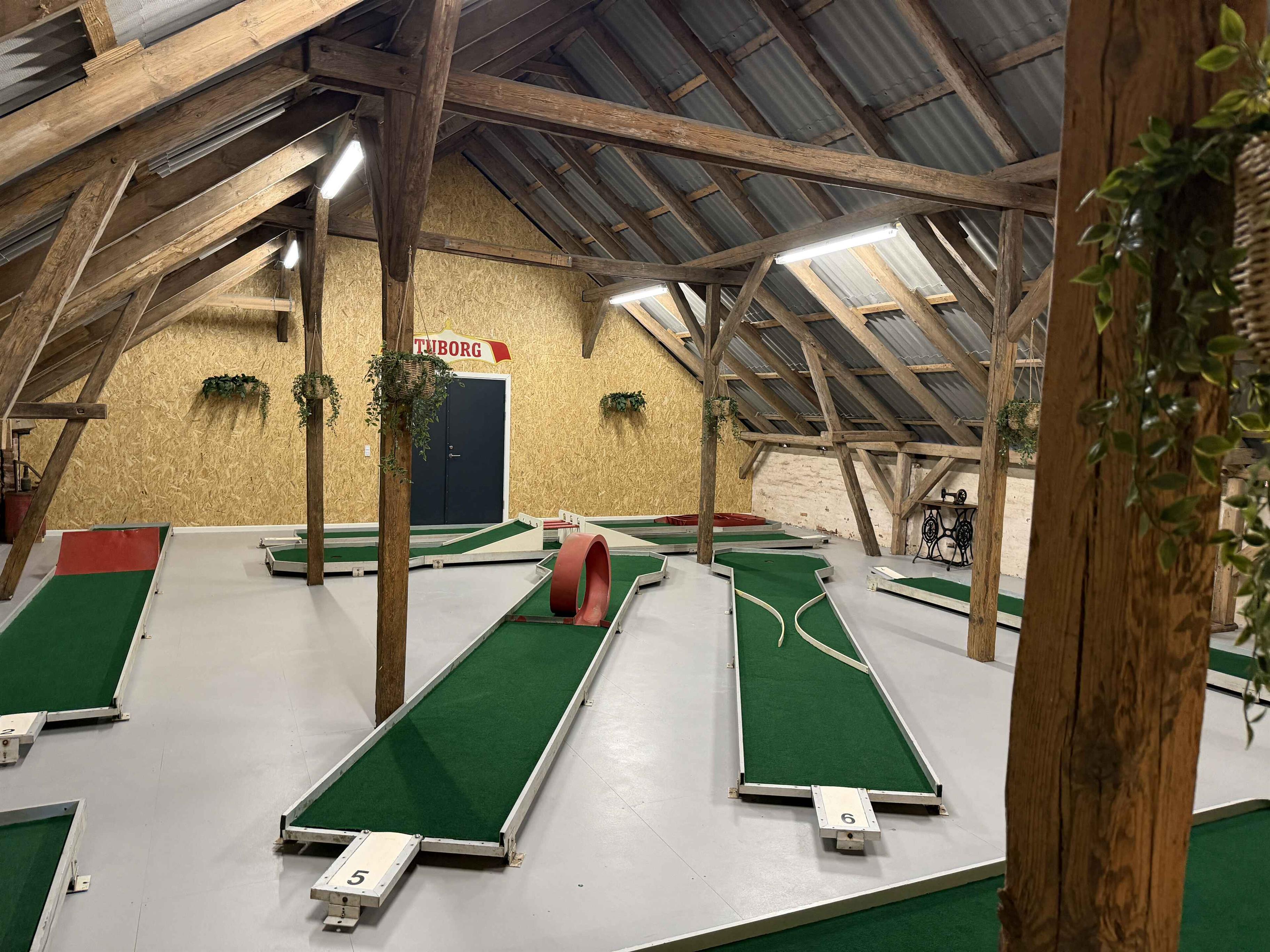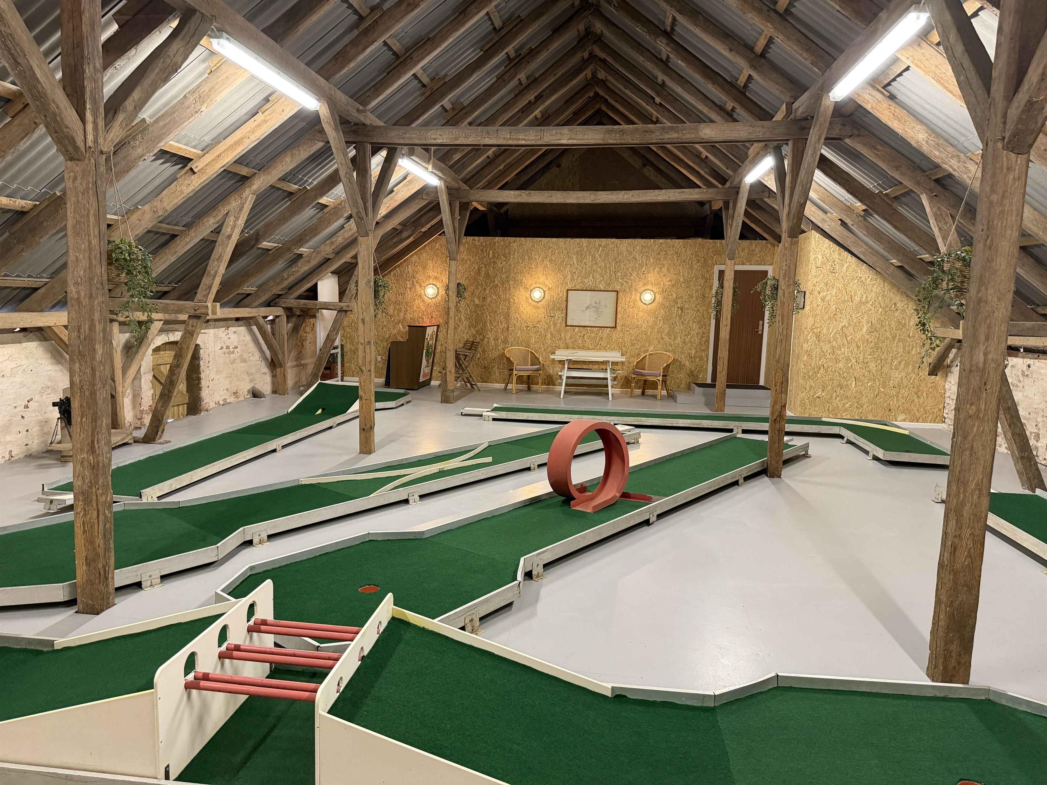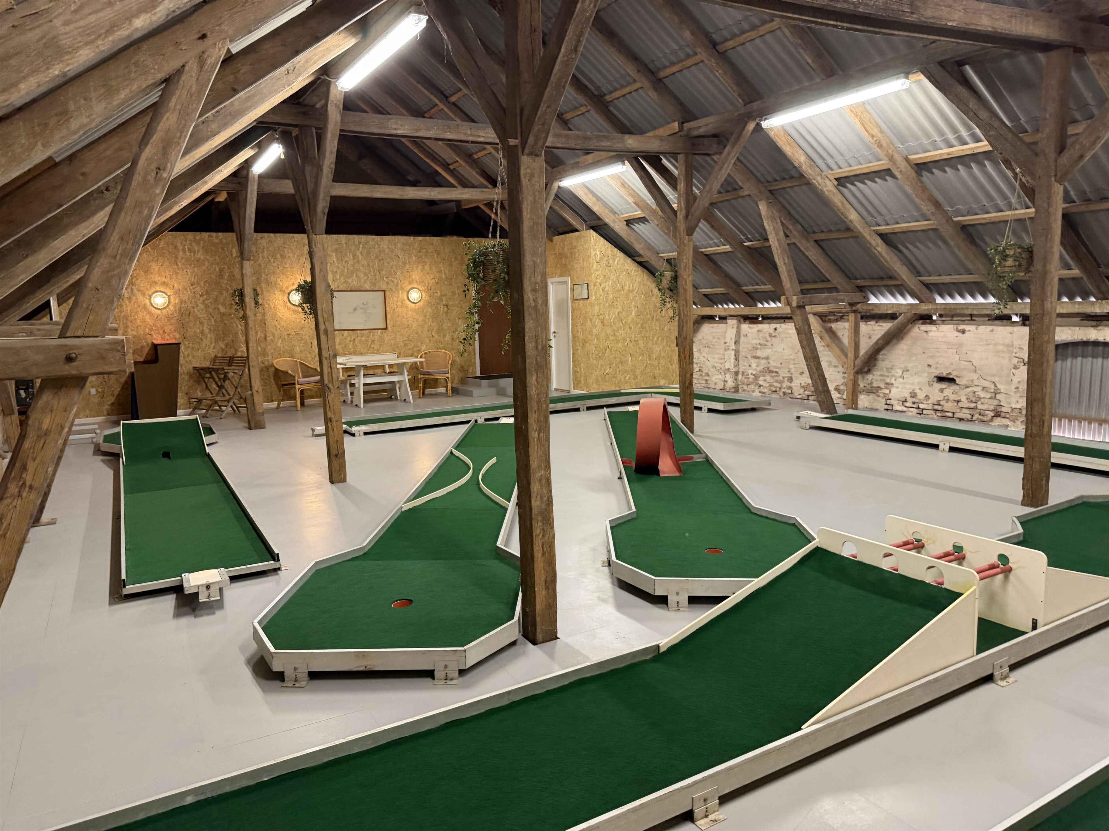 230 m² main house | 120 m² guest house | 18 beds | 100 m² banquet hall (50 guests) with kitchen | 110 m² activity room | 125 m² indoor mini golf (7 holes) | Hot tub | Barrel sauna | Grill hut (12) | 30 kW EV fast charger | Near child-friendly beach