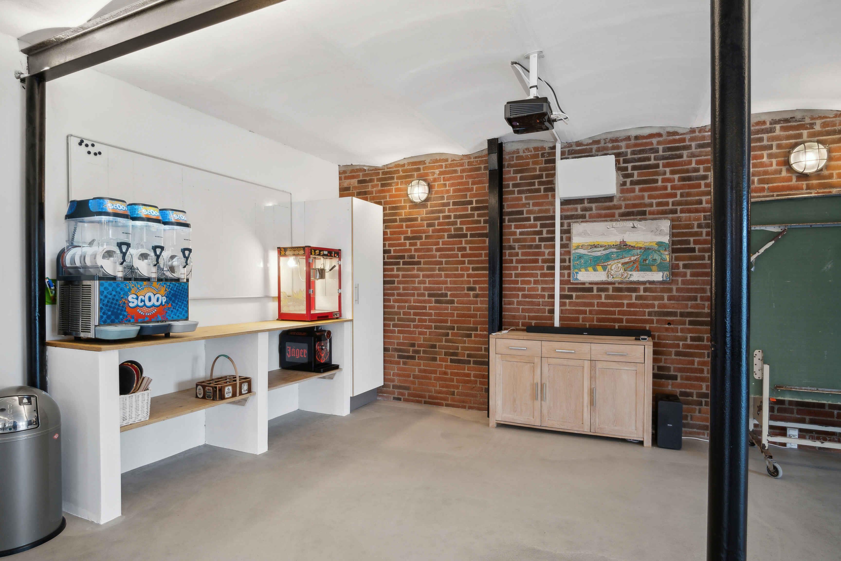 Well-located farm of 230 m2 with an accompanying retirement home of 120 m2, banquet/multi-purpose room with kitchen facilities of 130 m2, activity room of 100 m2, gravel-covered courtyard of 2,700 m2, and a garden with multiple sections including a separate area with a wilderness hot tub, sauna, and grill hut of about 4,700 m2. Additionally, there is both an 11 kW AC charger for electric/hybrid cars and a 30 kW DC fast charger for electric vehicles available. The farm's large 26 kWp solar panel system, located on the roof of one of the outbuildings, significantly contributes to sustainable electricity production. Superfast 360 Mbps WIFI is available in the homes, banquet hall, and activity room, as well as outdoor WIFI near the west-facing gable of the main house around the garden pond, hot tub, sauna, and grill hut. Main house: The main house is 230 m2 on one floor and dates back to 1850. It offers plenty of space with a total of 16 rooms. You'll find 3 large, authentically furnished living rooms with a TV with Chromecast, 4 bedrooms, 1 playroom (with the possibility of a sofa bed), a well-equipped kitchen with a Sage Barista Pro espresso machine, Kenwood mixer, blender, fondue set, and much more, as well as 2 large, new bathrooms with underfloor heating (installed in 2020 and 2022), and a separate toilet. The main house is decorated in a charming, original style with modern furniture and older paintings, mostly from the local area. The farm is heated by a new air-to-water heat pump (installed in 2021). Outdoors, there's plenty of space: a large gravel-covered courtyard of around 2,000 m2, a covered terrace with 10-12 seats, a terrace heater and gas and charcoal grill, a secluded terrace (not covered) with 10-12 seats, a fenced fire pit, and a garden pond. The garden, around 4,000 m2, is divided into several sections and includes fruit trees, berry bushes, and a greenhouse with seasonal vegetables. For children, there's a large trampoline with a safety net (4.30 meters), 2 football goals, 2 rocking animals, a playhouse, and a large swing set with five different swings, climbing rope, and slide. Additionally, there are various bikes for children and adults, mooncars, pedal tractors, etc. The garden also includes a fenced-off area with a new 2.25-meter electrically heated wilderness hot tub with a thermal lid (2023), a 3.5-meter wood-fired sauna barrel (2021), an outdoor shower with a hot water tank, and a large wood-fired grill hut for 12 people (2022). A certain amount of firewood is free to use during your stay. Retirement home: The retirement home is around 120 m2 on two floors, built in 1948. It has been fully renovated in 2023/2024 and features an entrance hall, utility room, bathroom with underfloor heating, a well-equipped kitchen with a KitchenAid coffee machine, Dualit espresso machine, KitchenAid mixer, microwave, Liebherr fridge-freezer, dining room with seating for 8, living room with TV and Chromecast, and 4 bedrooms (2 on the first floor and 1 with underfloor heating). The house is decorated in a charming, original style with modern furniture and older paintings, mainly from the local area. Heating is provided by a new air-to-water heat pump (installed in 2023). Outdoors, there is a large terrace of 70 m2, of which 40 m2 is covered, with garden furniture for 8 people and a gas and charcoal grill. There's also a 200 m2 gravel courtyard and a 700 m2 garden. Superfast 360 Mbps WIFI is available. Activity room: The activity room is 100 m2 and was established in 2023 on the old hayloft on the first floor of the farm. The room is insulated and heated with 2 air-to-air heat pumps. Available facilities include a pool table, table football, air hockey, 2 dartboards (traditional/electronic), shuffleboard, poker table (6 seats), craft table (4 seats and 1 Trip Trap high chair), LEGO, toys, board and card games, a 32" TV and projector with Chromecast, Xbox 360 and Xbox One with many games, as well as seating areas and a large bar in the middle of the room with 7 barstools, all kinds of glasses, a coffee machine, blender, fridge, and more. Superfast 360 Mbps WIFI is available. Banquet/multi-purpose room: The banquet/multi-purpose room with an attached kitchen, totaling 130 m2, was built in 2024 in the old cattle barn on the ground floor of the farm. The actual banquet/multi-purpose room is about 90 m2 and can accommodate around 60 guests. Additionally, there's an entrance/hallway of about 25 m2 and a kitchen of about 15 m2. The original details have been preserved, including the old vaulted ceiling and beams. The floor is equipped with underfloor heating and treated with epoxy. The primary heat source is an air-to-air heat pump. There's ample table space, storage, and shelving. You'll find a projector, whiteboard, sound system with subwoofer and Bluetooth, a large portable display fridge, a 10-liter industrial coffee machine, and a draft beer system with 3 taps. There's also a sink with cold water. The kitchen includes an industrial fridge, fridge-freezer, DeDietrich oven, cooktop, extractor with external motor, 2 dishwashers, a pizza oven with 2 chambers, a powerful large microwave with convection, a boiling water tap (Taurus), KitchenAid blender, Kenwood mixer with accessories, and a water-cooled beer dispenser (Celli) with room for 3 kegs. There's also plenty of storage, shelving, and table space in the kitchen, as well as a stainless steel rolling table. Superfast 360 Mbps WIFI is available. Currently, there are no toilet facilities, which are planned to be established in the fall of 2024. Toilets are available in the main house and the retirement home. On request, tables, chairs, tableware, tablecloths, beer kegs, CO2 bottles, a popcorn machine, and a ScOOp slush machine with 3 chambers can be rented. Upon arrival, there are always 4 tables for 6 people and 20 upholstered chairs, along with tableware and cutlery for 20 people. In 2024, a 170 m2 tiled terrace was established around 