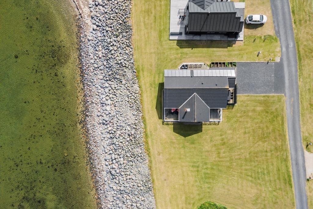 Das Ufergrundstück bietet direkten Zugang zur Die reizvollen Küstenlinie. Am Ferienhaus können Sie Ball spielen, mit den Kindern auf der Grasfläche umhertollen und das Leben auf den schönen Terrassen genießen. Sie haben dabei die freie Wahl zwischen mehreren offenen Aufenthaltsplätzen und angenehm abgeschirmten Eckchen. Die überdachte Westterrasse eignet sich sehr gut für die langen, hellen Abendstunden. Der sich Ihnen eröffnende Fjordblick ist atemberaubend. Wenn Sie sich während Ihres Urlaubs bestens erholen und gänzlich abschalten möchten, finden Sie kein schöneres Fleckchen.