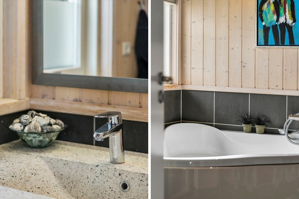 Der außergewöhnliche Fjordblick ist nur einer der Gründe, warum Sie sich für dieses Urlaubsdomizil entscheiden sollten. Das 104 m² große Ferienhaus präsentiert sich ansprechend und gut eingerichtet - unter anderem mit einer Badewanne, einer Waschmaschine und einem Wäschetrockner, einer Fußbodenheizung im Badezimmer, guten Doppelbetten in den beiden Schlafräumen und mit einem Kaminofen im Wohnraum. Die gut ausgestattete Küche ist offen mit dem Wohnraum verbunden. Somit genießen Sie selbst während der Essenzubereitung das Beisammensein mit Ihren Lieben. In der komfortablen Polstersitzecke sorgt ein großer Flachbild-TV mit Chromecast für Unterhaltung - zumindest dann, wenn Sie sich vom herrlichen Ausblick den die hohe Fensterpartie offenbart losreißen können. Der Kaminofen wird durch eine Wärmepumpe mit zusätzlicher Kühlfunktion unterstützt. Solarzellen sogar für klimafreundlich aufgewärmtes Wasser.