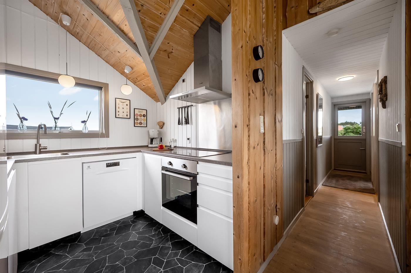 Köket är utrustad med 1 kylskåp Det finns 4 keramiska spishällar, bakugn, mikrovågsugn samt diskmaskin.