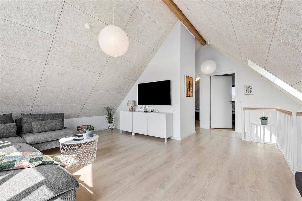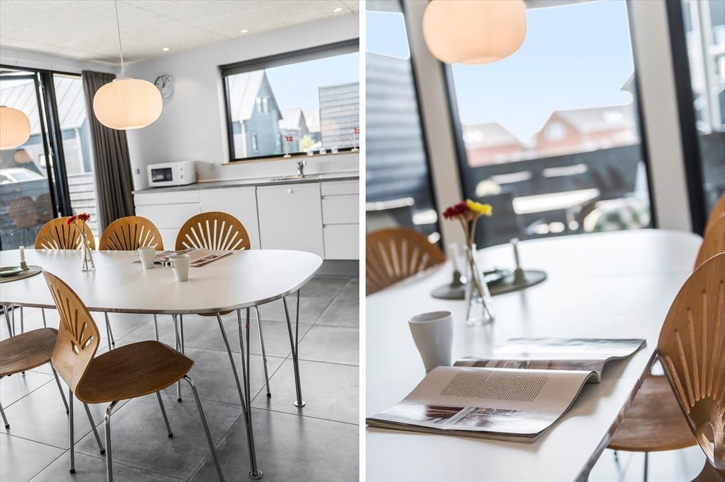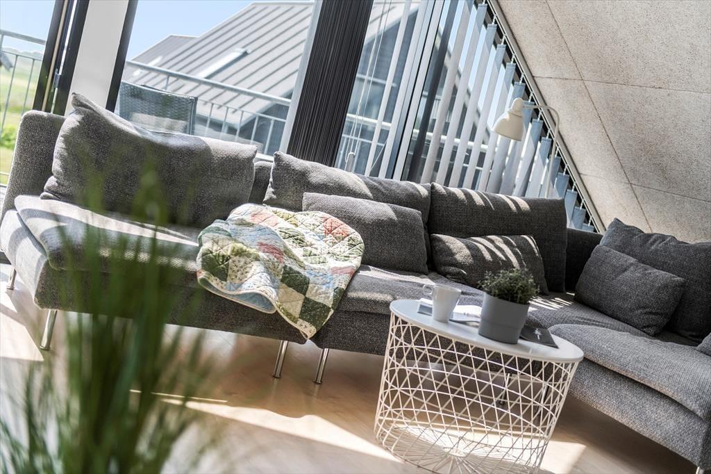 ”Havhusene” (Meerhäuser) ist der gemeinsame Name für die modernen Designerhäuser aus Holz, die in schöner Lage direkt neben den weiten Grünflächen des Rømø Golfklubs liegen. Dieses Exemplar ist 2020 erbaut und damit eines der allerneusten. Ein prachtvoller Rahmen für das süße Urlaubsleben. Auf zwei Etagen und 120 m² erwarten dich drei gute Schlafzimmer, zwei Badezimmer, eine Küche mit Esstisch und ein Wohnbereich. Jeder einzelne Raum präsentiert sich hell und einladend mit stilvoller Einrichtung. Dies gilt insbesondere für das große Badezimmer im Erdgeschoss, wo du dich selbst im Whirlpool verwöhnen kannst, wenn du wirklich einmal abschalten möchtest. Reines Wohlbehagen empfindest du auch im Wohnbereich der oberen Etage, denn hier kannst du im Sofa entspannen, während du den wunderbaren Lichteinfall durch die großen Giebelfenster genießt.