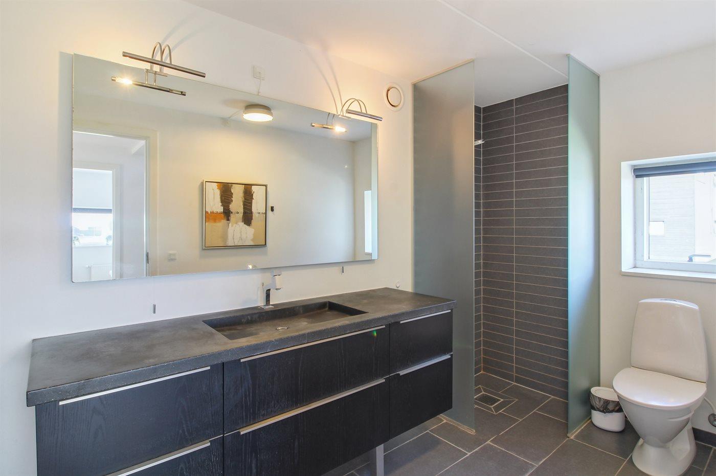Det finns 2 badrum med duschkabin och 2 toaletter. Det finns golvvärme i 2 badrum.