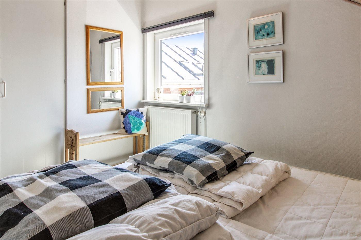 Det finns totalt 2 sovrum. Sängplatserna fördelar sig på: 2 sovplatser i dubbelsäng. 2 sovplatser i enkelsängar. 2 sovplatser i bäddsoffa (enkel).