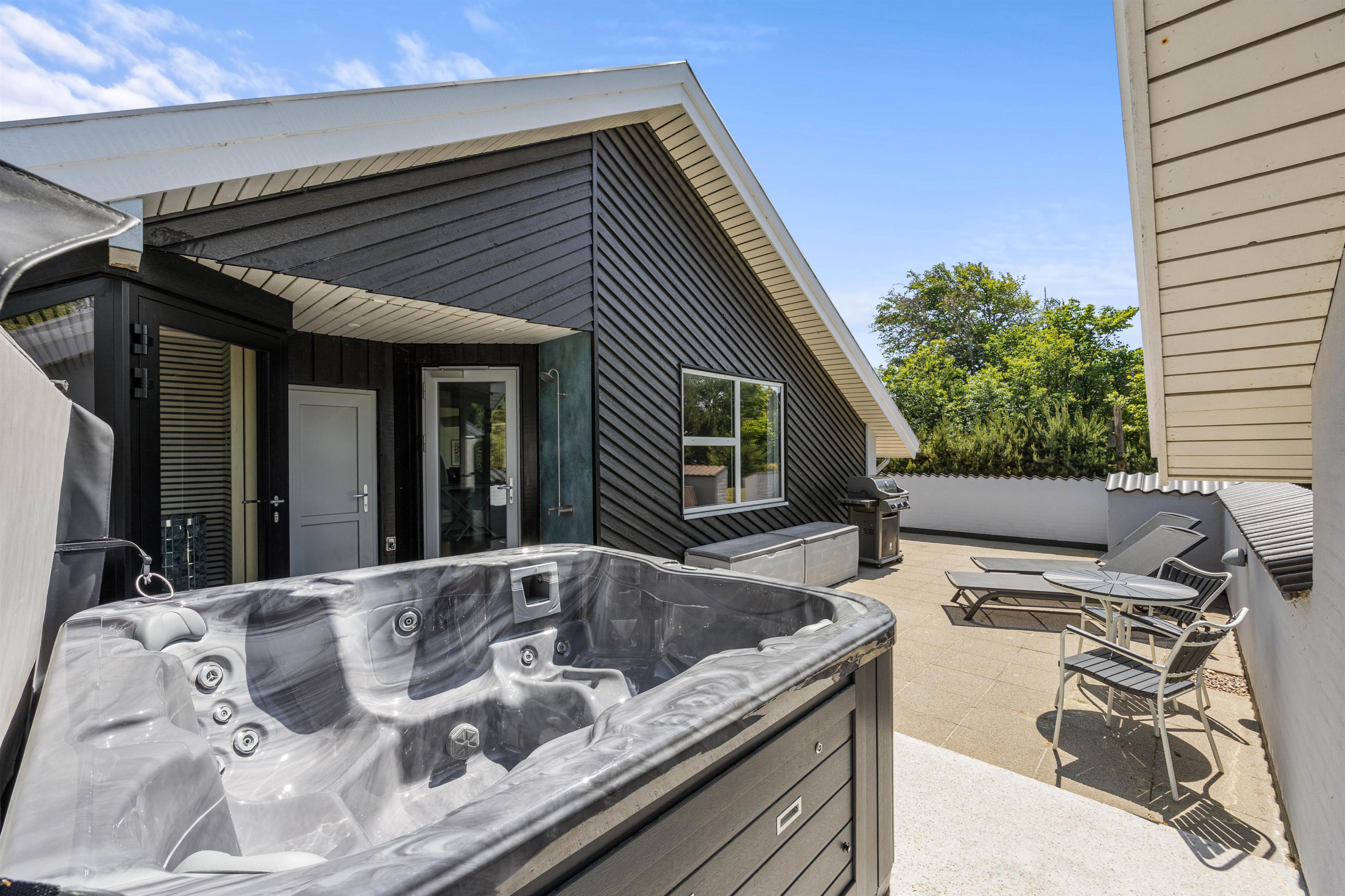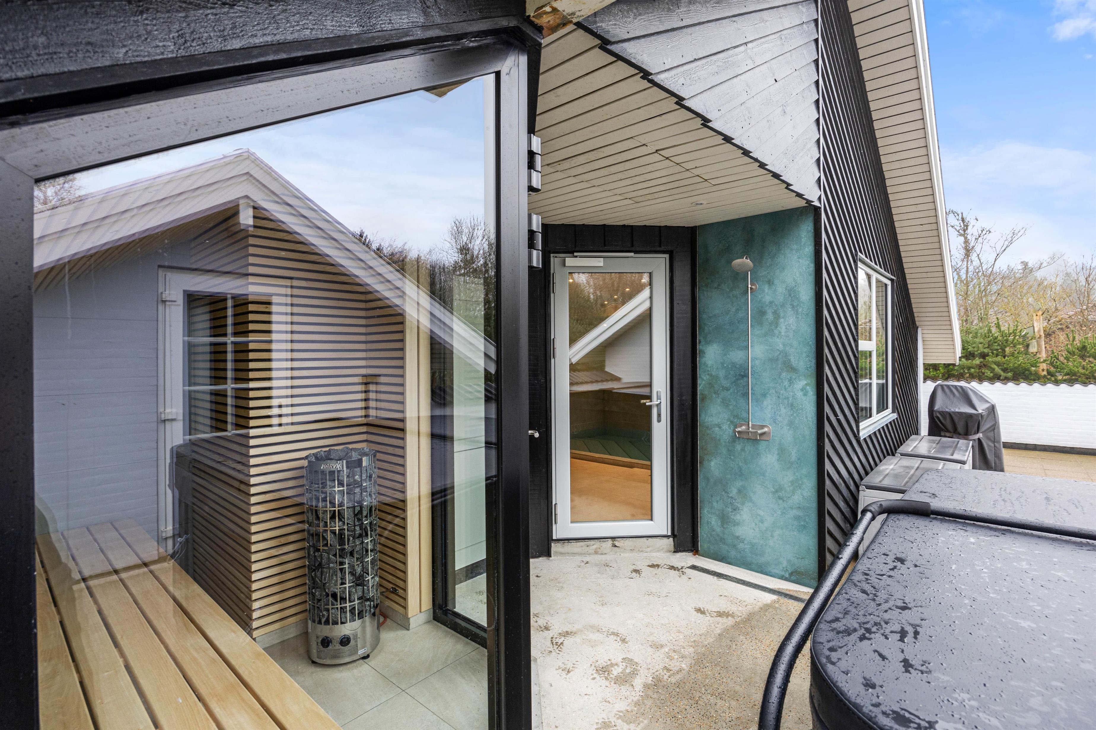 For additional wellness facilities, you'll find a lovely outdoor hot tub (seating 5 people), outdoor sauna, and outdoor shower* on one of the holiday home's many comfortable terraces.