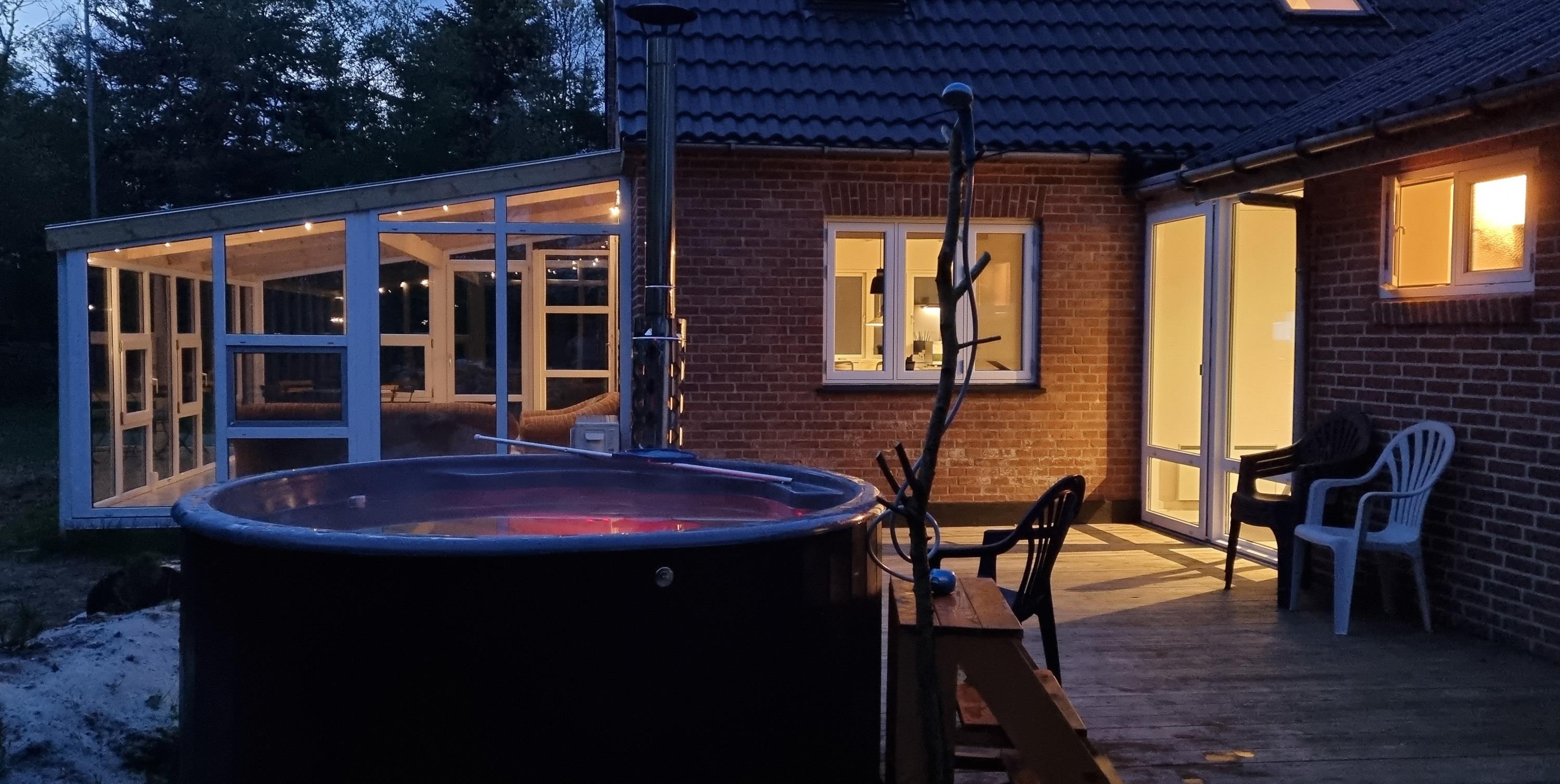 Looking for something special, yearning for peace and quiet, plenty of nature and love seclusion? Then this thoughtfully and stylishly renovated house at Blåbjergvej 140, refurbished in 2020, is definitely the right choice. Up to 6 people and your dog will find ideal conditions here for spending quality time together. The absolute highlight is the wood-fired hot tub under the open sky, where you can bid farewell to the day in the evening.