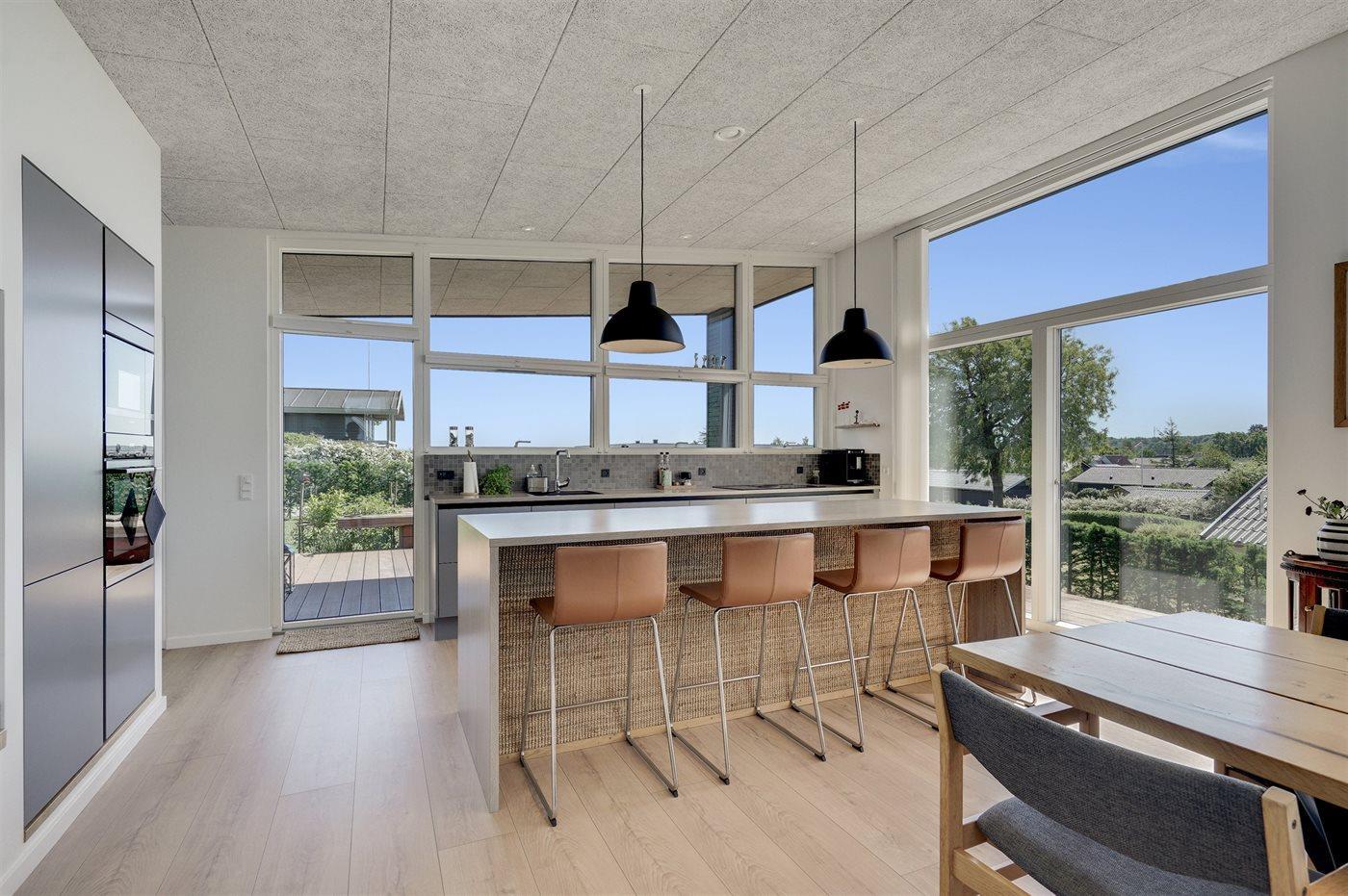 Köket är utrustad med 1 kylskåp Det finns 4 induktionshällar, varmluftsugn, mikrovågsugn samt diskmaskin.
