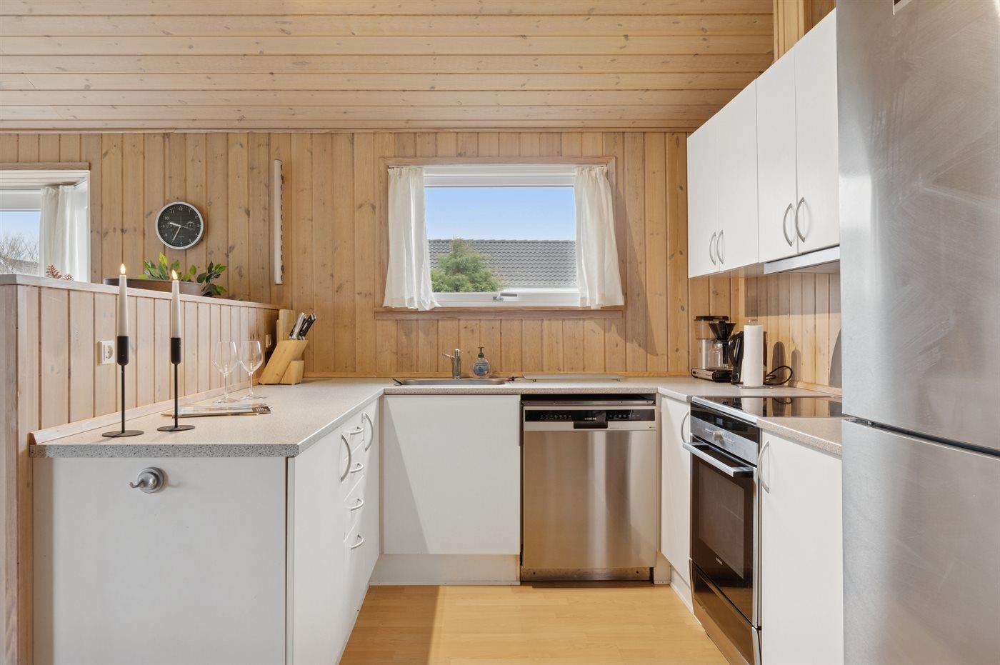 Köket är utrustad med 1 kylskåp Det finns 4 induktionshällar, varmluftsugn, mikrovågsugn samt diskmaskin.
