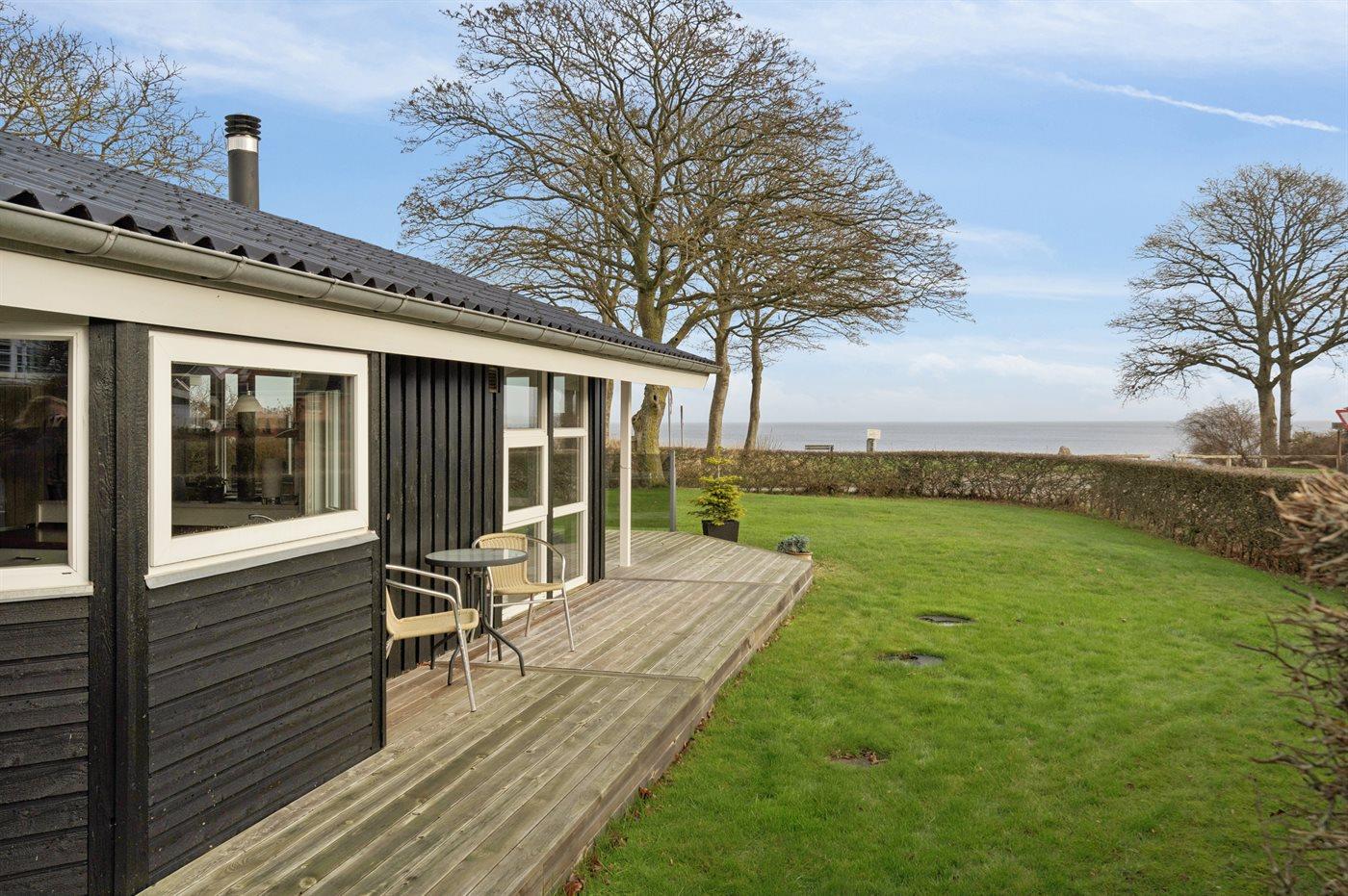 Fritidsbostaden ligger på en 639 m² stor anlagd trädgård. Avstånd till hav är 50 m. Närmeste affär ligger på ett avstånd av 3000 m. Till fritidsbostaden hör terrass. Dessutom finns det övertäckt terrass. Sandlåda. Det finns grill til förfogande. P-plats på tomten.