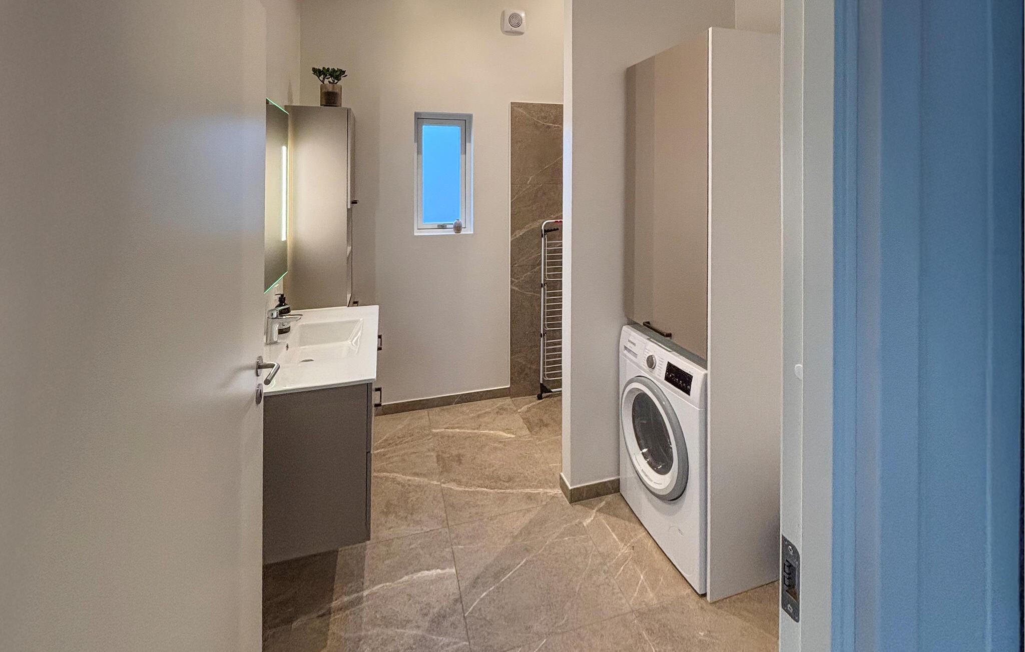 Se fram emot en vistelse i detta semesterhus, som ger dig en känsla av lugn så snart du anländer. Koppla av i det mysiga vardagsrummet med varma träytor, bekväma sittplatser och en ljus matplats. Låt blicken vandra genom de stora fönstren ut i trädgården och njut av din semester till fullo. Tillaga dina måltider som du vill i det vackra köket med öppen planlösning.
