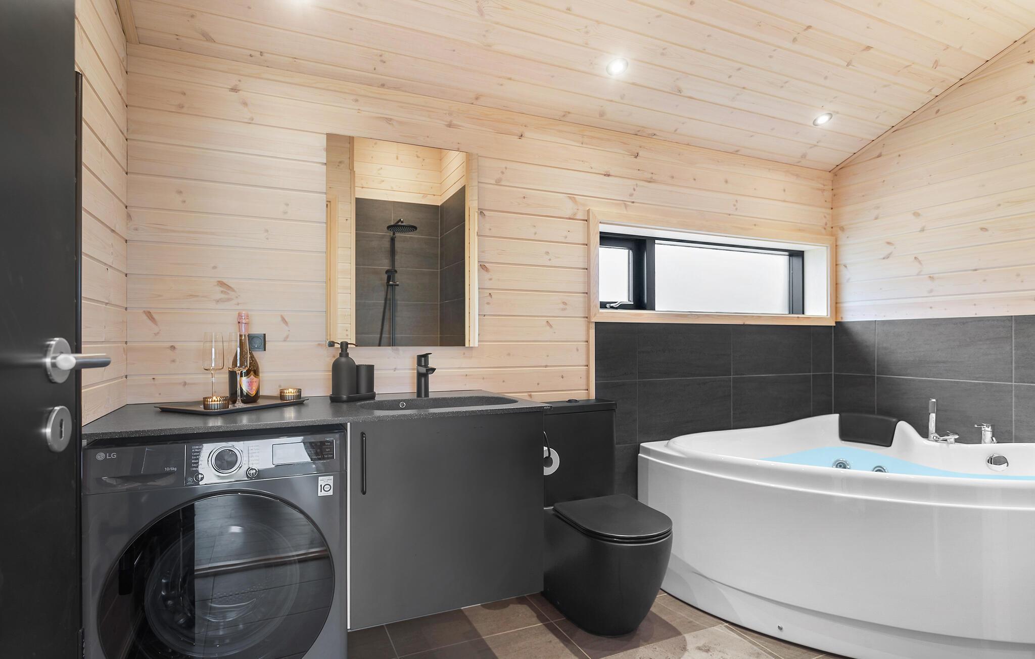 Se fram emot detta vackra hus, som välkomnar dig med ett framgångsrikt samspel mellan trä, mörka möbler och designelement. Njut av din vardagssemester medan du lagar mat, äter eller spelar i vardagsrummet och upplever en fantastisk utsikt över vattnet. Gå ut på den vackra och delvis täckta träterrassen på morgonen. Om du vill kan du njuta av din morgondusch utomhus eller dricka ditt kaffe på terrassen och planera dina aktiviteter för dagen med havsutsikt.