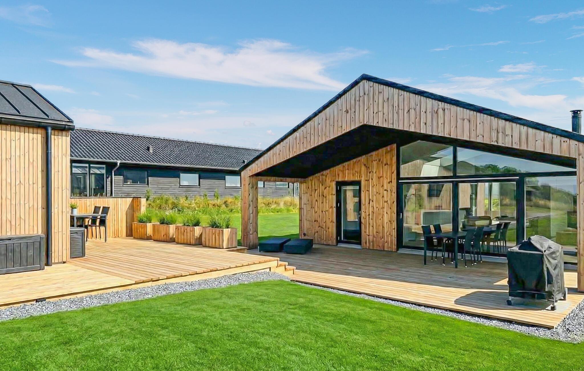Elegans och rustikitet möts harmoniskt i detta semesterhus klätt i ljust trä. Fönster från golv till tak släpper in mycket naturligt ljus, medan varmt trä och en mysig soffa skapar en avslappnad atmosfär. Oavsett om du streamar din favoritserie, spelar biljard eller lagar läckra måltider tillsammans i det moderna köket, kan du organisera dagen i din egen takt.