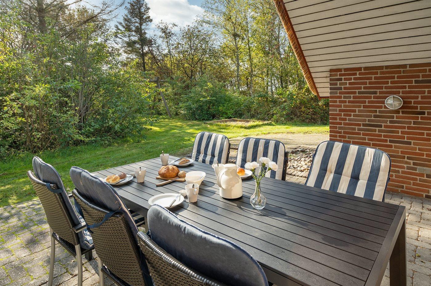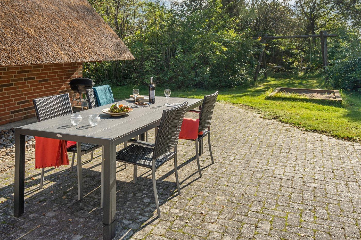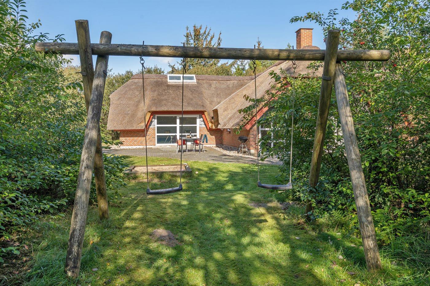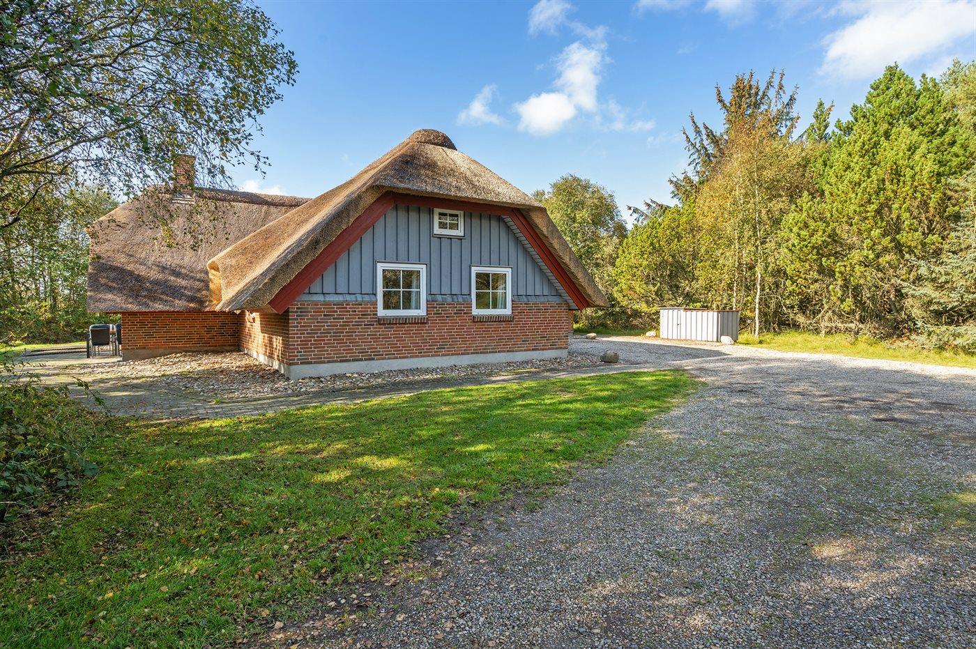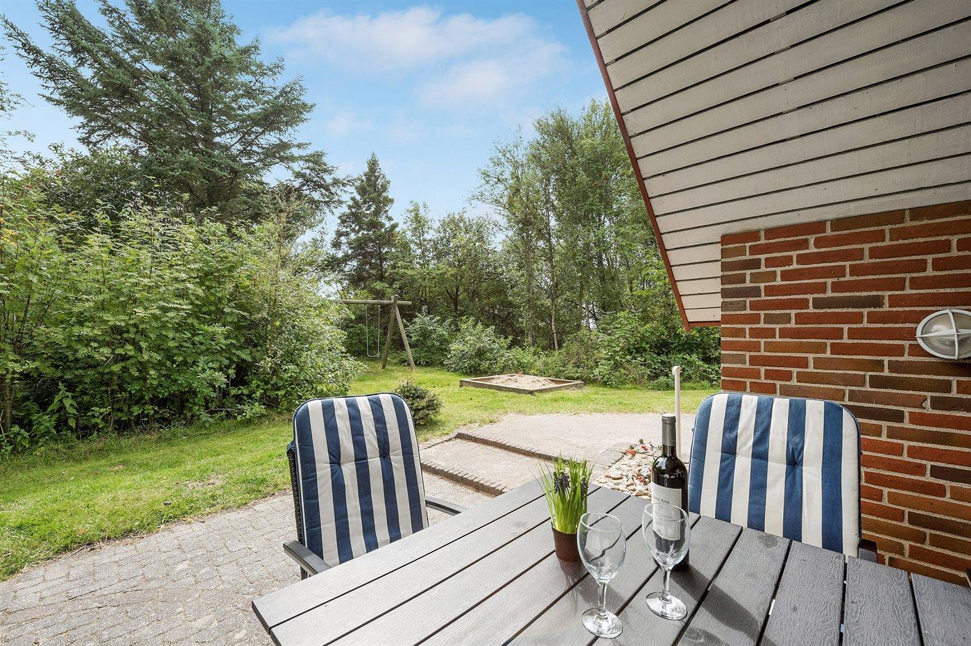 Fritidsbostaden ligger på en 2600 m² stor naturtomt. Avstånd till hav är 2800 m. Närmeste affär ligger på ett avstånd av 1500 m. Till fritidsbostaden hör 50 m² terrass. Dessutom finns det 12 m² övertäckt terrass. Sandlåda. P-plats på tomten.