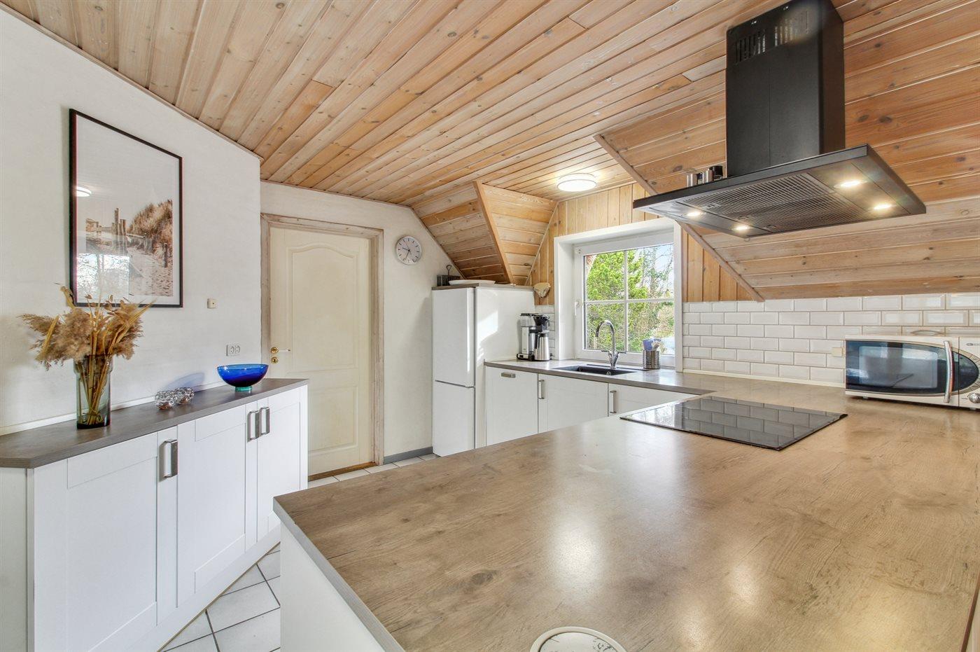 Köket är utrustad med 1 kylskåp Det finns 4 el. värmeplattor, bakugn, mikrovågsugn samt diskmaskin.