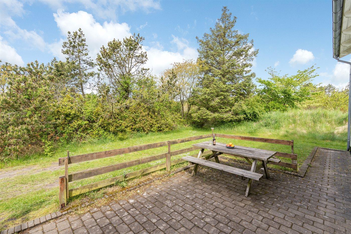 Fritidsbostaden ligger på en 1394 m² stor anlagd trädgård. Avstånd till hav är 5000 m.Avstånd till vadehavet 300 m. Närmeste affär ligger på ett avstånd av 100 m. Till fritidsbostaden hör 25 m² terrass. Det finns carport till förfogande.