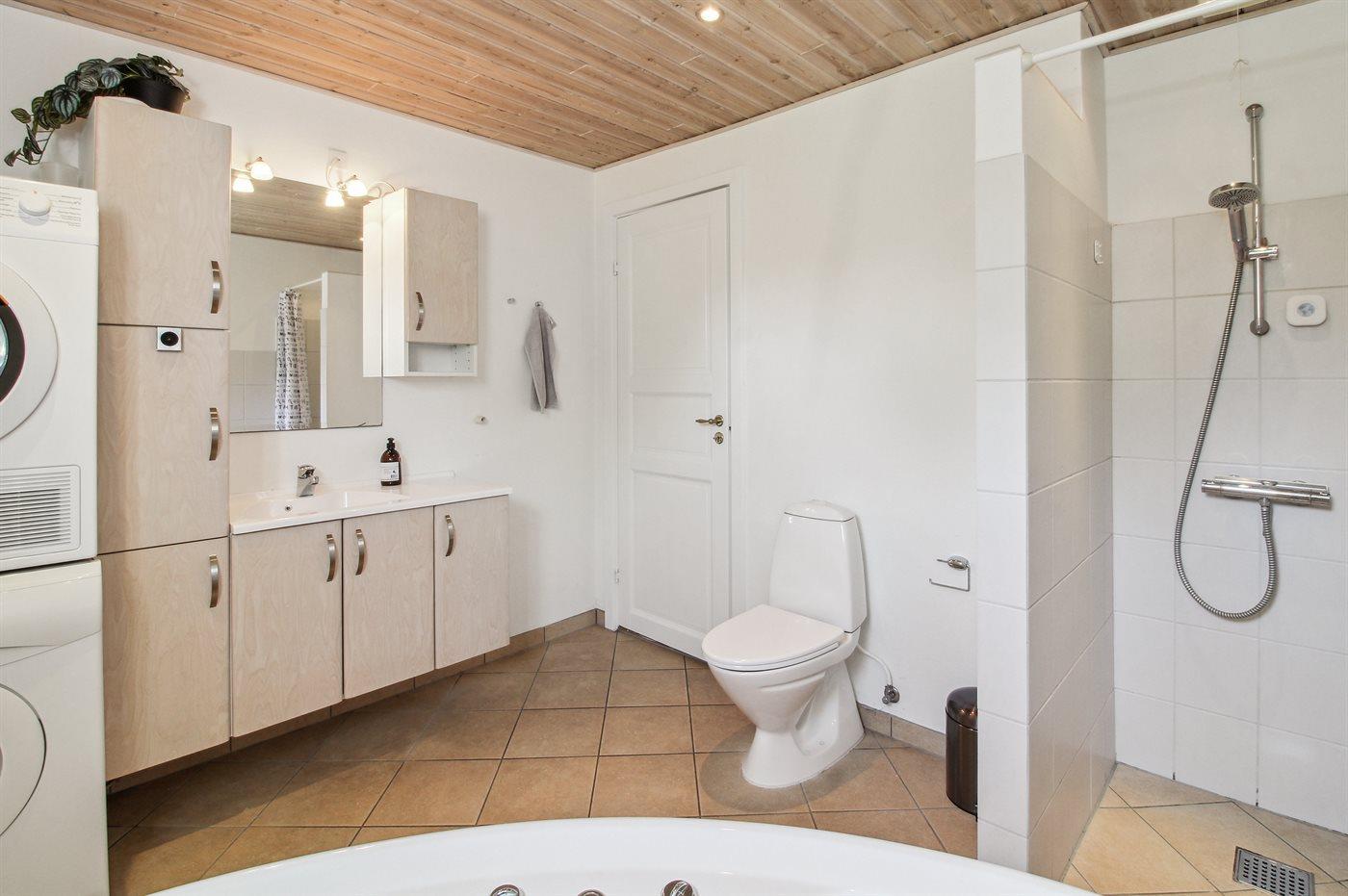 Det finns 2 badrum med duschkabin och 2 toaletter. Det finns golvvärme i 1 badrum. I bastun finns det möjlighet för avkoppling.