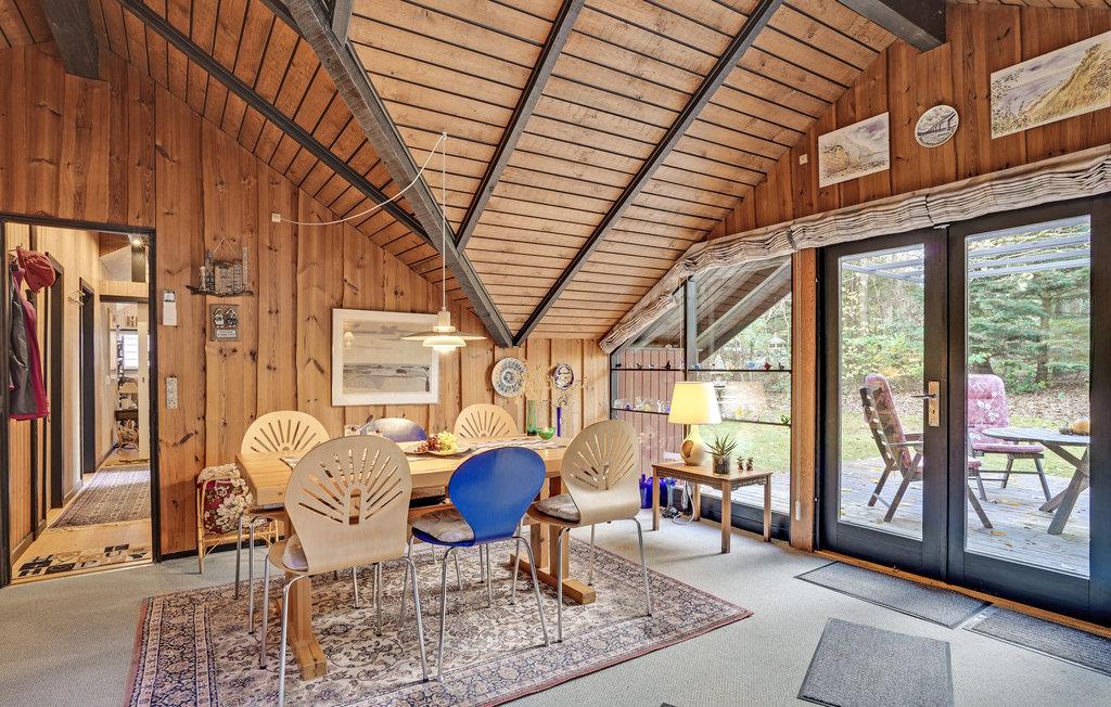 Se fram emot en avkopplande tid i detta semesterhus mitt i naturen inte långt från fjorden. Det rymliga huset är ljust inrett, har snedtak och i de flesta rum är väggarna vackert klädda i trä. I ett av de två vardagsrummen kan du äta tillsammans vid det stora matbordet med utsikt över de vackra träden utanför, och på kvällen kan du spela spel med vänner eller familj i en av de mysiga soffhörnorna eller koppla av och läsa en bra bok. Från varje vardagsrum har du tillgång till en terrass (den ena är delvis täckt) med trädgårdsmöbler och grill, där du kan äta en god frukost i soligt väder och avsluta dagen på kvällen.