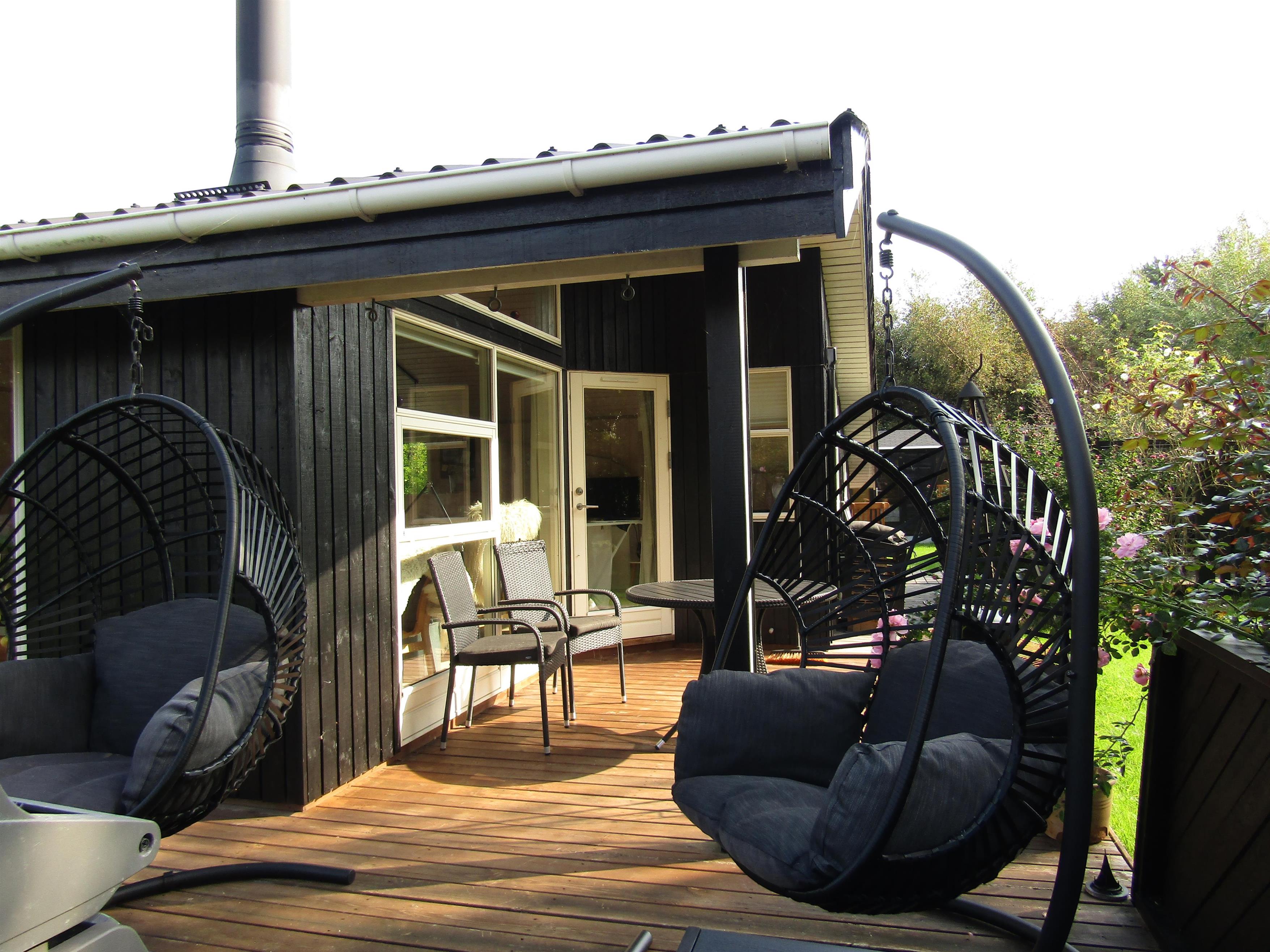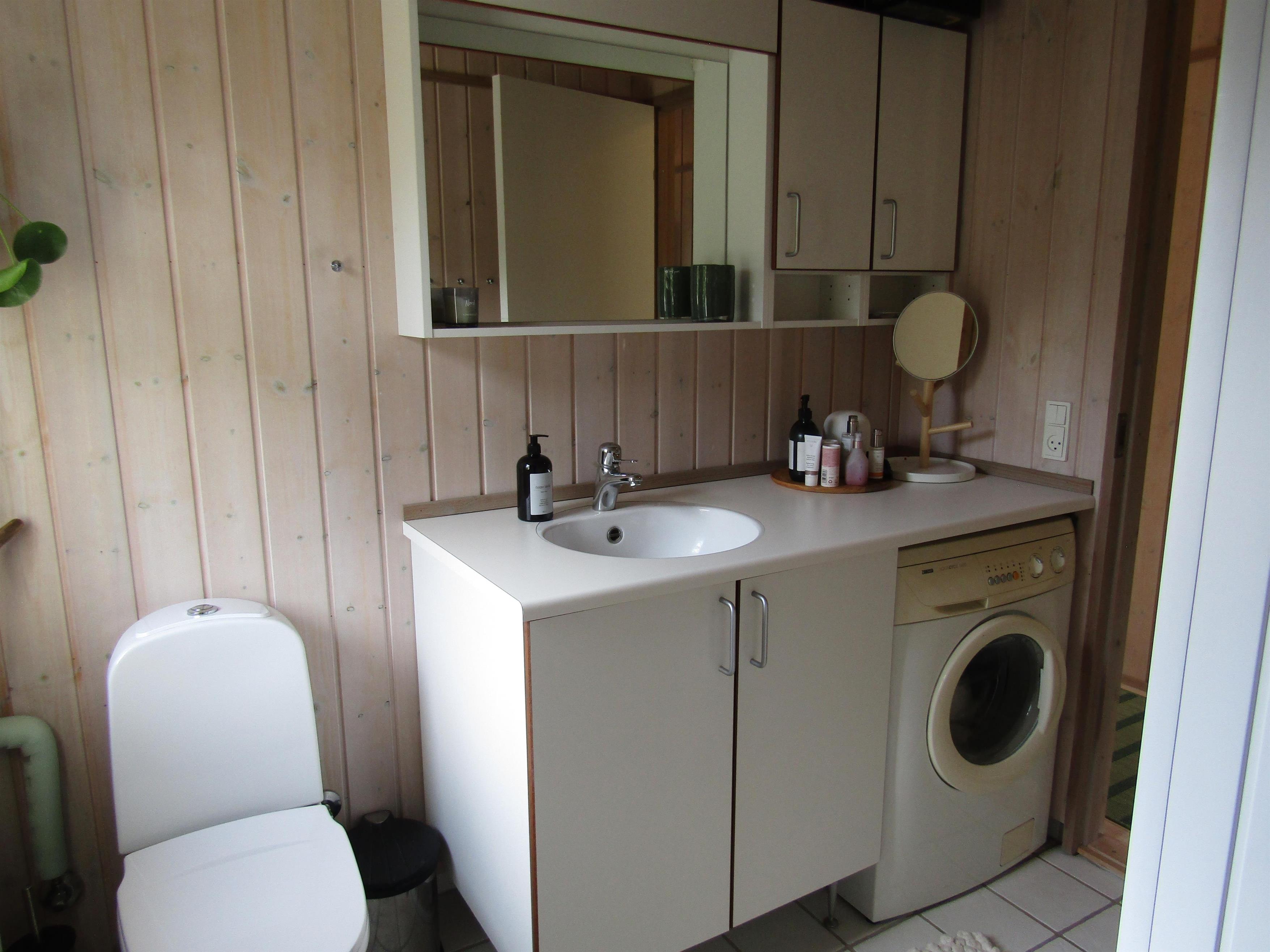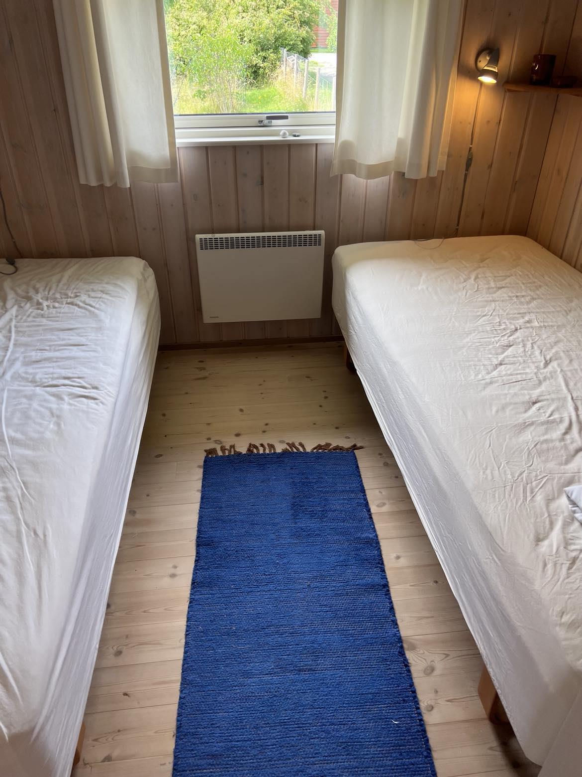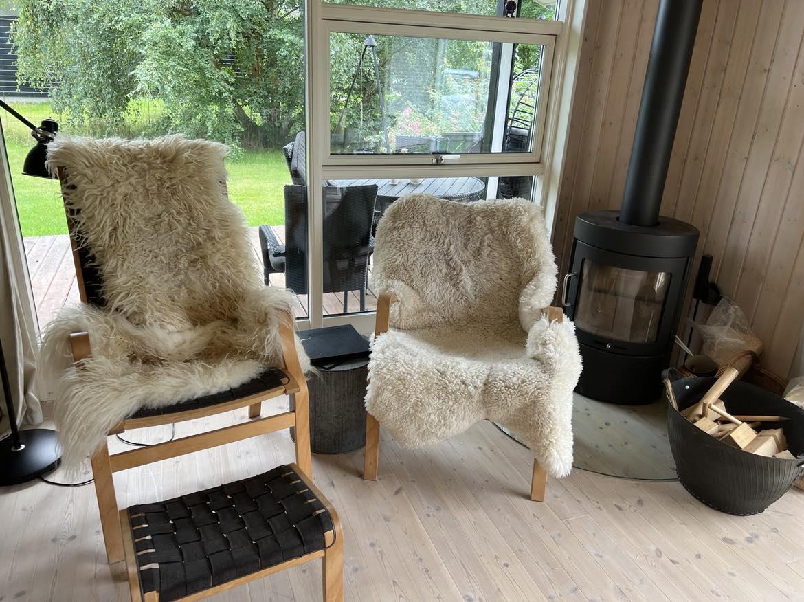 Here you will find a bright and inviting gathering place in the form of a spacious kitchen-living room, where large windows bring the garden right inside. In the living room you will find a cosy dining area and a comfortable sofa corner where you can relax after the day's adventures. On cool days, the wood-burning stove provides both warmth and a lovely atmosphere – the perfect setting for a relaxed evening. The holiday home is wood-panelled inside and has three good bedrooms: one with a double bed, one with two single beds and one with a single bed. In addition, the living room offers a lovely alcove, ideal as extra sleeping space, a reading corner or a cosy place for the children to play.