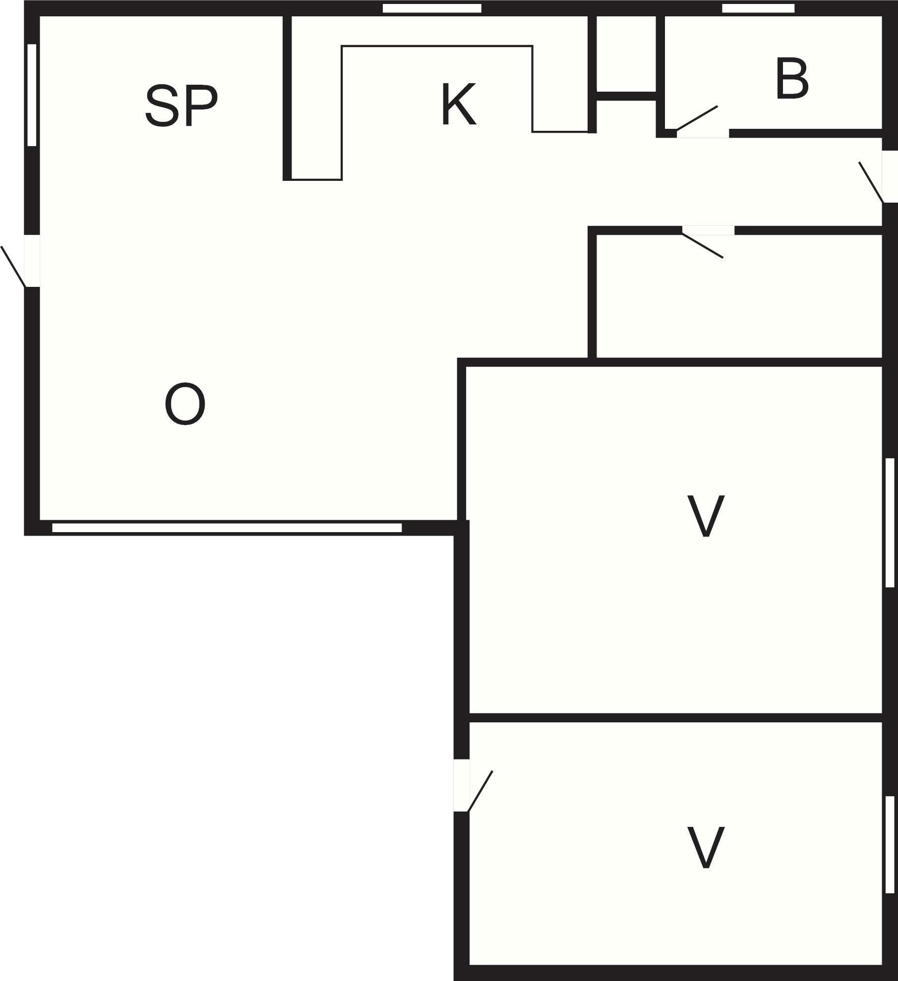 Huset er indrettet med åbent nyere køkken, spise- og opholdsstue. Der er 3 gode værelser, hvor fordelingen er 1 værelse med dobbeltseng, værelse med enkeltseng og 1 værelse med etagesenge. Badeværelset er oprindeligt, funktionelt og med el-gulvvarme. Der er ydermere vaskemaskine og tørretumbler i udhuset.