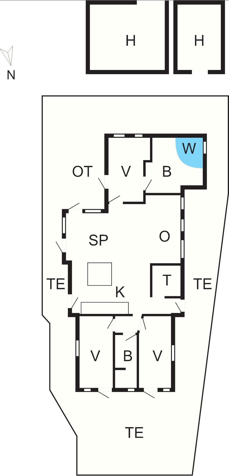 Der er gulvvarme i hele huset og huset opvarmes med energivenlig luft/vand varmepumpe. Der er tre soveværelser, alle med en dobbletseng og på to af dem er der smart-tv, samt en hems med en dobbeltseng. Der er to badeværelser i huset med toilet, håndvask samt bruseniche, på det ene er der spabad til to personer. I entren er der en fryser på 60-99 liter og vaskemaskine.