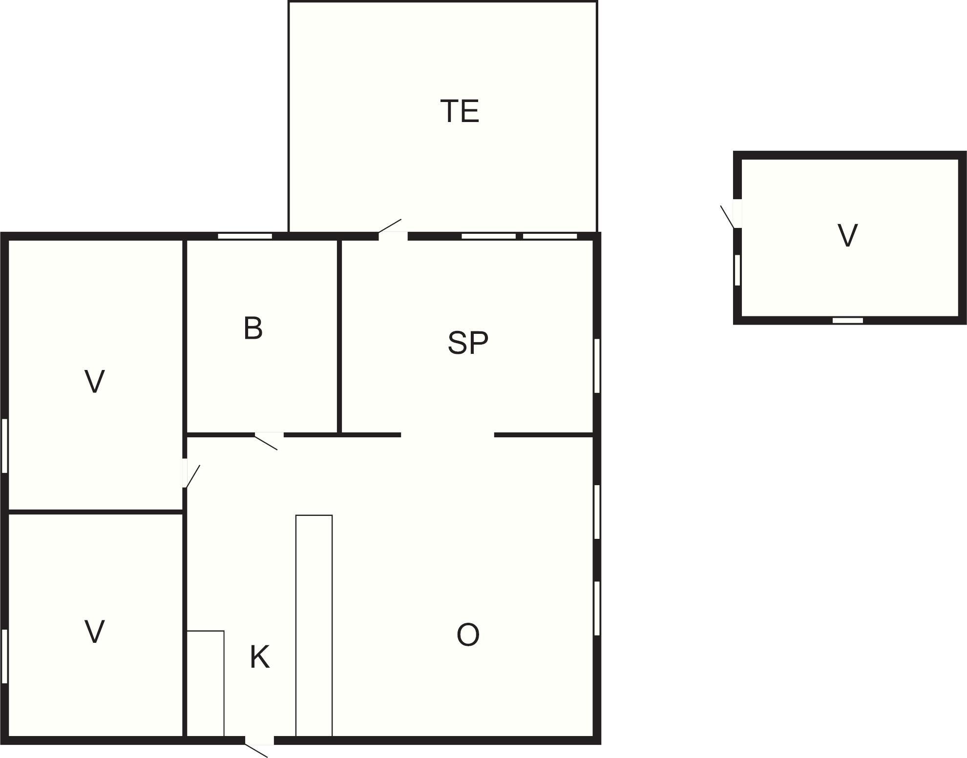 Den hyggelige stue er kombineret med et moderne køkken, som indeholder induktionskomfur, separat ovn, køleskab med fryser samt opvaskemaskine. I stuen er der smart-tv og trådløst internet, samt luft-til-luft varmepumpe og brændeovn til hyggelige dage, hvor du vil slappe af. Der er to soveværelser, et med dobbeltseng, det andet med to enkeltsenge og et anneks med to enkeltsenge. Sommerhusets badeværelse har toilet, håndvask og bruser.