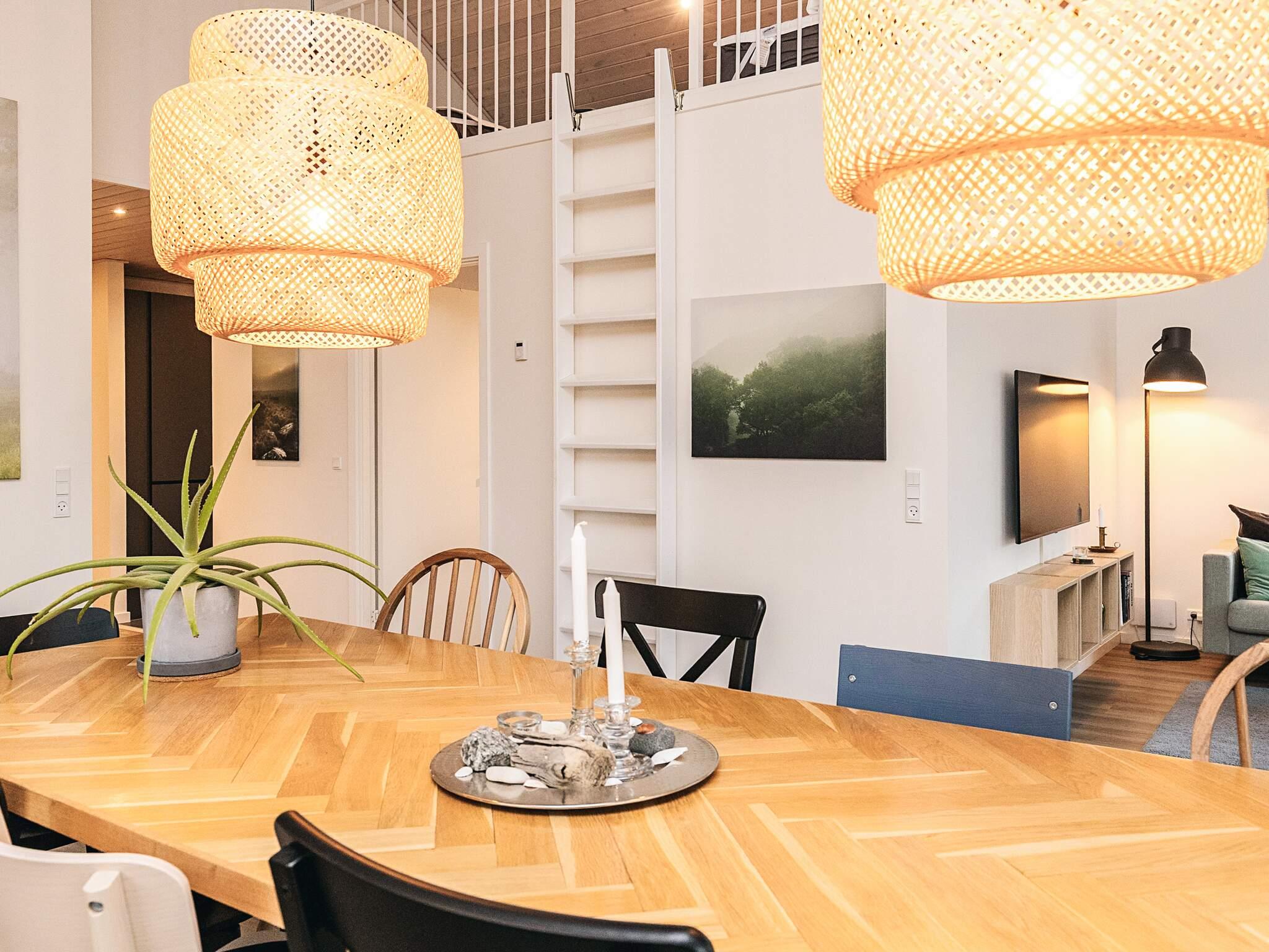 Den hyggelige stue er kombineret med et moderne indrettet køkken, hvor der bl.a. er kaffemaskine,induktionskomfur, separat ovn og mikroovn, køleskab med frostboks samt opvaskemaskine. I stuen er der smart tv samt trådløst internet, brændeovn til at skabe hygge og varme på de kolde dage. Sommerhuset hems med 2 opredninger samt playstation, til børn og barnlige sjæle.