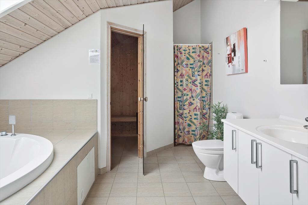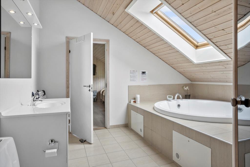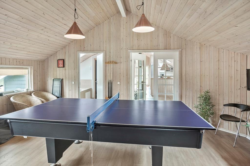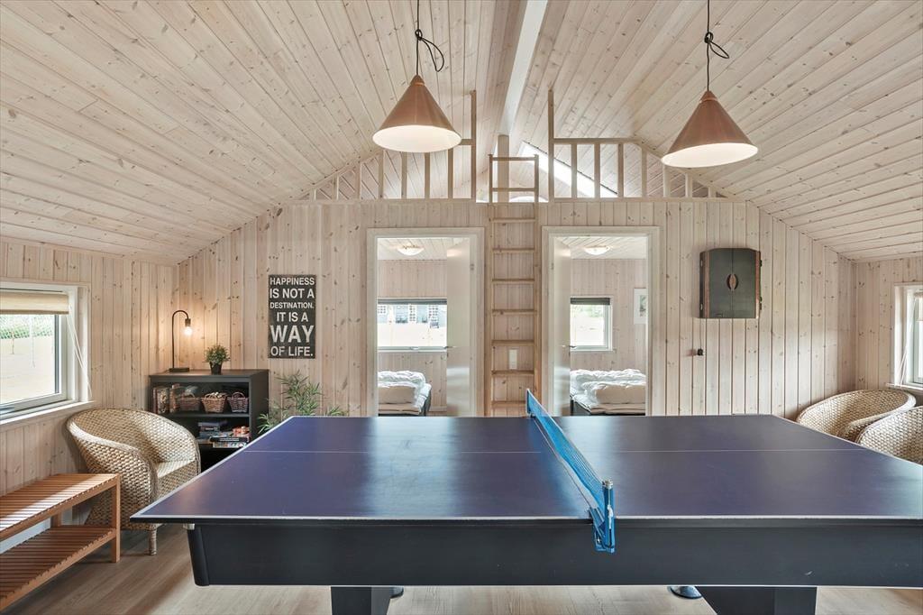 Das Ferienhaus ist mit 4 guten Schlafzimmern ausgestattet, alle Zimmer sind Doppelzimmer mit brandneuen Betten ab Mai 2022 sowie einem großen Dachboden, auf dem 4 Personen schlafen können. Außerdem verfügt das Haus über 2 schöne Badezimmer, die WC, Dusche, Waschmaschine und Trockner enthalten. Darüber hinaus bietet das Ferienhaus die große offene moderne Wohnküche, in offener Verbindung mit dem Wohnzimmer, das über einen Sofabereich und einen Essbereich verfügt, sowie Zugang zur großen, schönen Terrasse und zum Garten. Vom Wohnzimmer aus haben Sie Zugang zum Aktivitätsraum des Hauses, der sowohl einen Billardtisch als auch eine Tischtennisplatte enthält, beim Aktivitätsraum finden wir Badezimmer Nummer 2 mit WC, Dusche, Whirlpool und einer köstlichen Sauna.