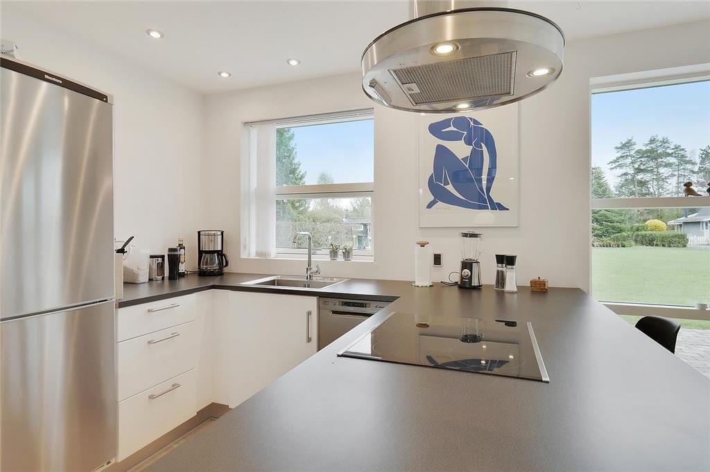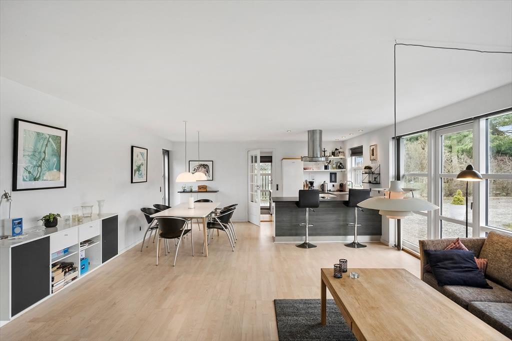 Wenn Sie vom Eingang aus zu Fuß weitergehen, erreichen Sie die schöne offene Küche, die alles enthält, was Sie für den Urlaub benötigen. In der Küche befindet sich der große Esstisch, und weiter durch den Raum gelangen Sie im Wohnzimmerabteilung, wo Fernseher, Sofa und Sessel sich befinden. Die gesamte Wohnküche ist von großen und köstlichen Fenstern umgegeben, die immer einen schönen Lichteffekt gibt und ein guten blick zum garten haben. Vom Wohnzimmer aus haben Sie Zugang zum letzten Schlafzimmer , das auch mit ein Doppelbett ausgestattet ist.