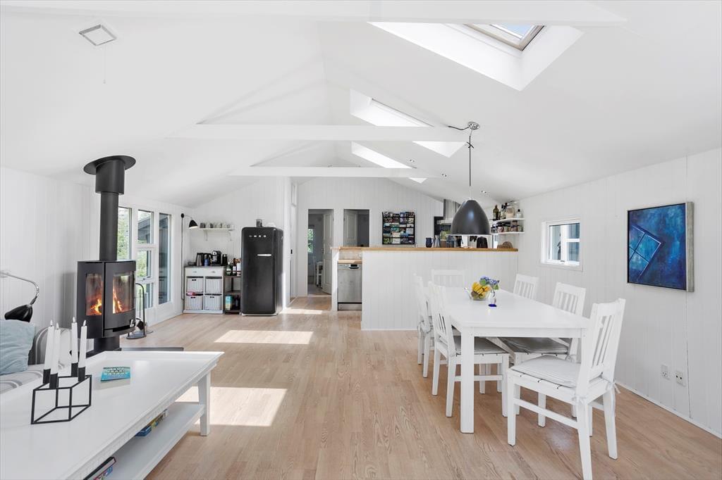Dieses schöne Ferienhaus verfügt über: Badezimmer mit Dusche und WC sowie Waschmaschine, außerdem gibt es im Badezimmer des Ferienhauses eine Fußbodenheizung. Darüber hinaus verfügt das Ferienhaus über 3 gute Schlafzimmer mit einem Doppelbett in 2 der Zimmer und 1 Einzelbett im dritten Zimmer. Das Ferienhaus verfügt über eine wunderschöne offene Küche mit Blick auf das Esszimmer und das Wohnzimmer. Von der Küche und dem Wohnzimmer gibt es Zugang zur schönen Terrasse.