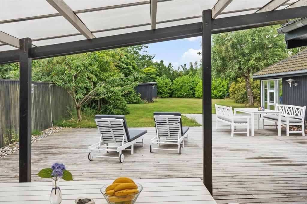 Das Ferienhaus liegt auf einem 1200 m2 großen Grundstück in einer ruhigen Gegend im Norden von Marielyst. Im Außenbereich befindet sich die schönste große Terrasse, gut ausgestattet mit vielen Sitzgelegenheiten, Grill und einer großen Rasenfläche mit viel Platz für die Kinder. Ein Teil der schönen Terrasse ist überdacht.